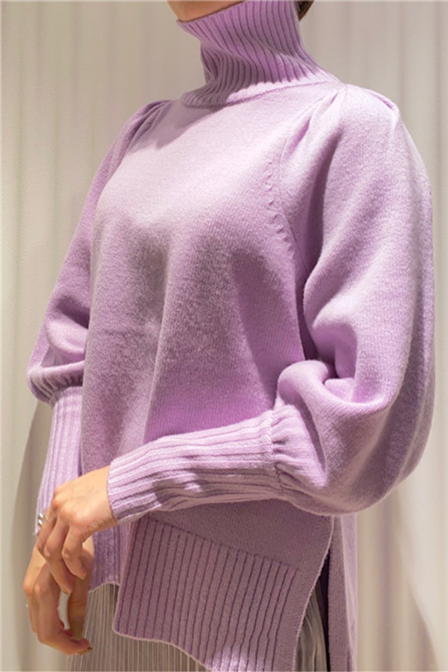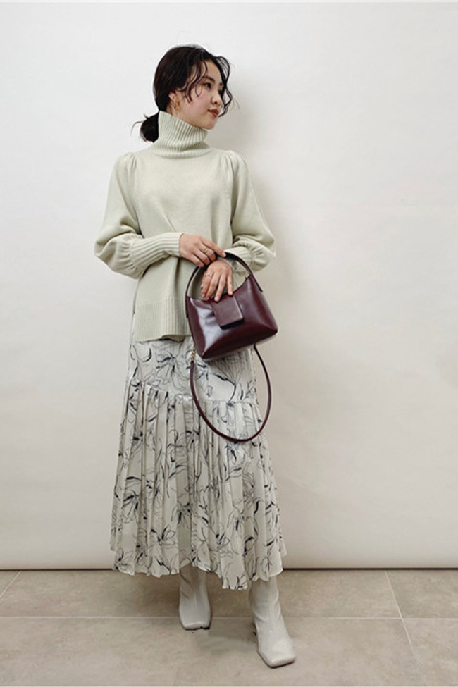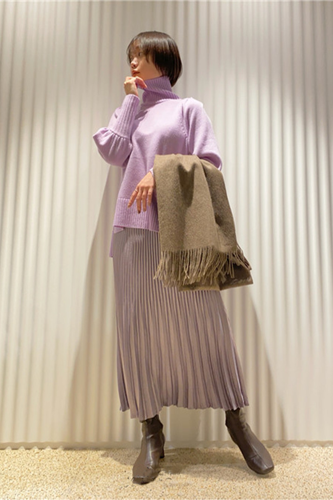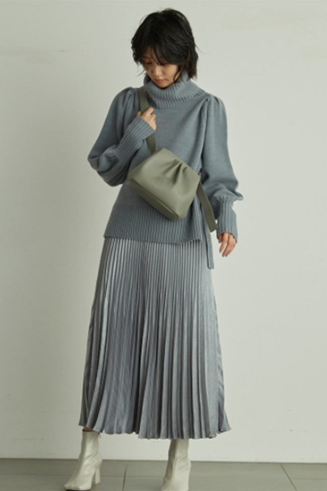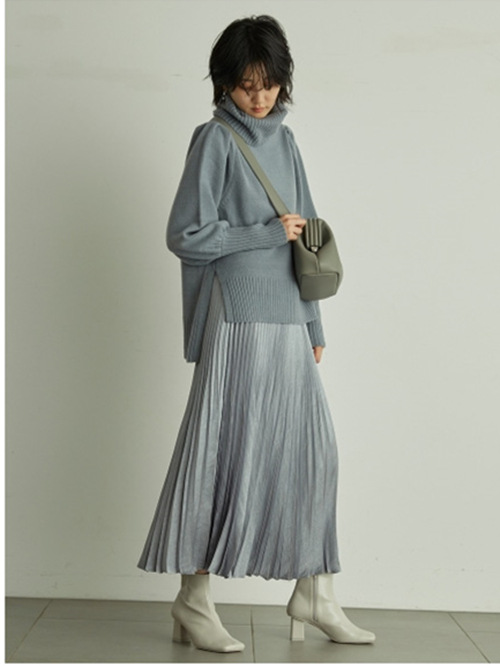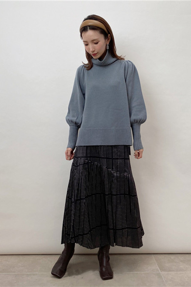 上質なニットの魅力を活かしたシンプルなデザインをベースに、立体的なパフスリーブで「SNIDEL」らしさを演出したハイネックニット。ネックライン、袖、裾のリブ切り替えが調度良いカジュアルさをもたらし、ラフな装いと女性らしいルックスをバランス良く表現しました。フェミニンなスカートからデニムまで、合わせるボトムスを選ばず幅広く活躍します。