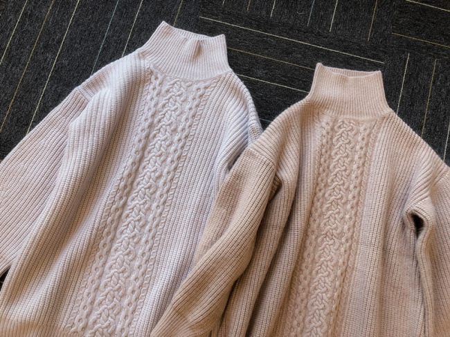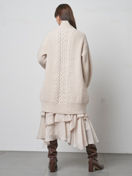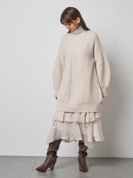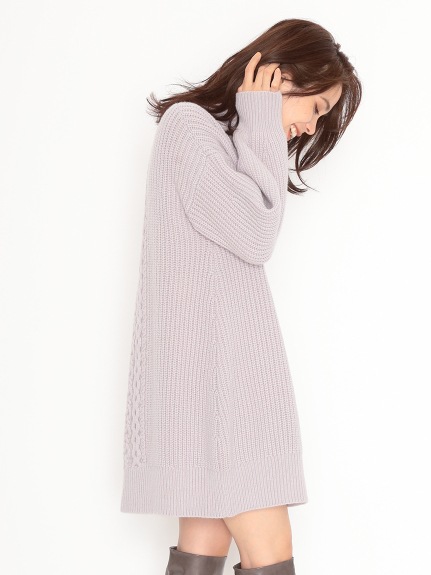 上質な手触りと暖かさが魅力の、ハミルトンウールを使用したニットワンピース。フロントのケーブル編みが愛らしく、ナチュラルな雰囲気でシーズンムードを高めます。その他のパーツにはリブ編みを採用し、着膨れを防いで身体に馴染むシルエットを叶えました。ふんわりとした立体感が女性らしく、ベーシックながら品の良い存在感を発揮。一枚ではもちろん、スカートやロングパンツとのコーディネートもおすすめです。