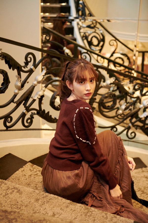 たっぷりシルエットのニットを合わせるのもおすすめ。