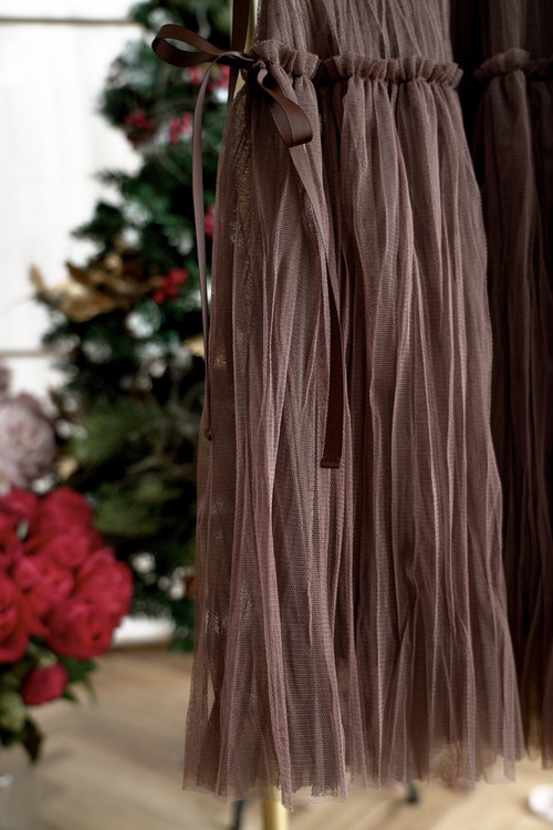 二段のティアードサイドにスカートにはアクセントとなるグログランリボンが施されています。