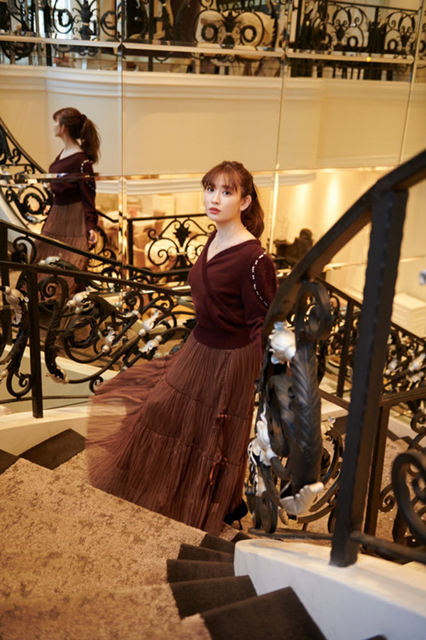 軽やかなシルエットを描くティアードスカートが魅力的な、とても優美な一着です。