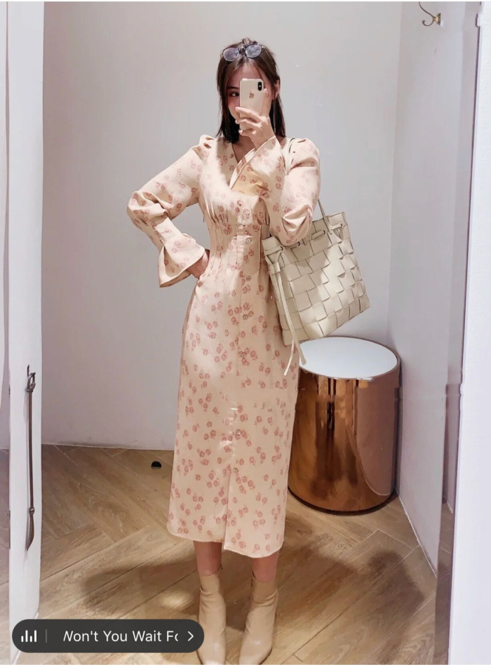 スタイルアップを叶えるプリントワンピース。メリハリのあるタイトシルエットをつくるウエストタック、バックには身幅のサイズ調整が可能のレースアップをデザインしました。配色のPNKとワントーン見えのBRWのクラシカルな2色展開です。