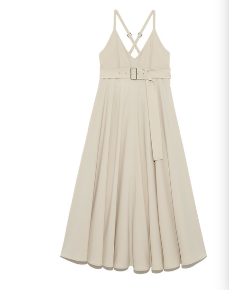 背中でクロスするストラップが、バックスタイルも素敵に演出。