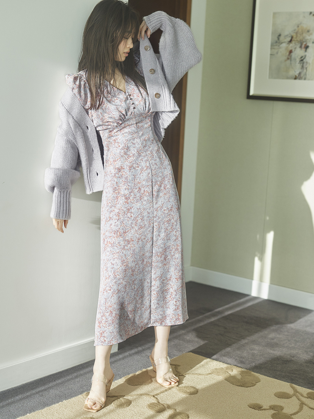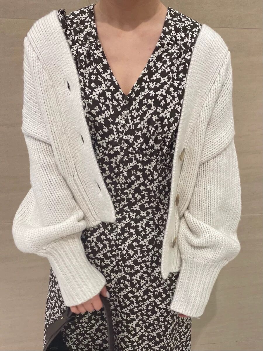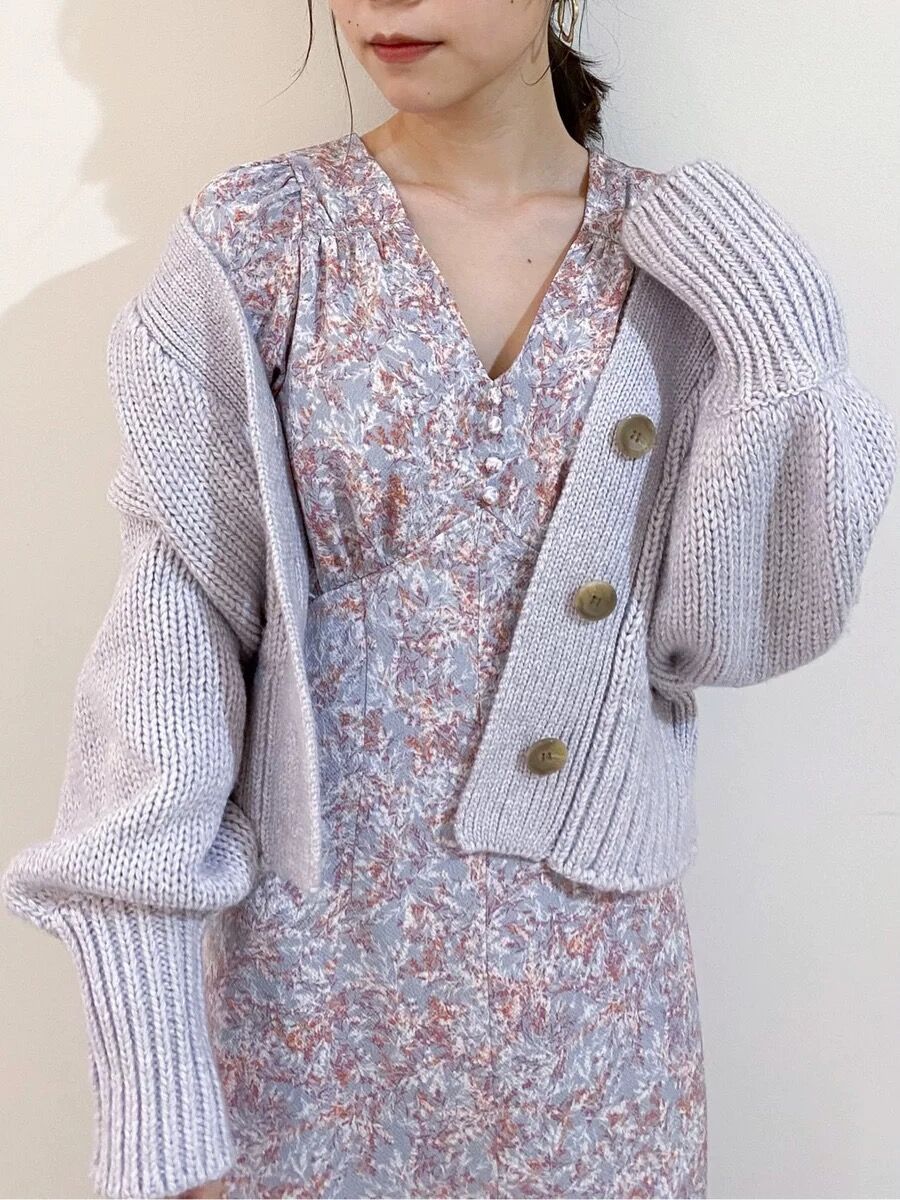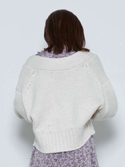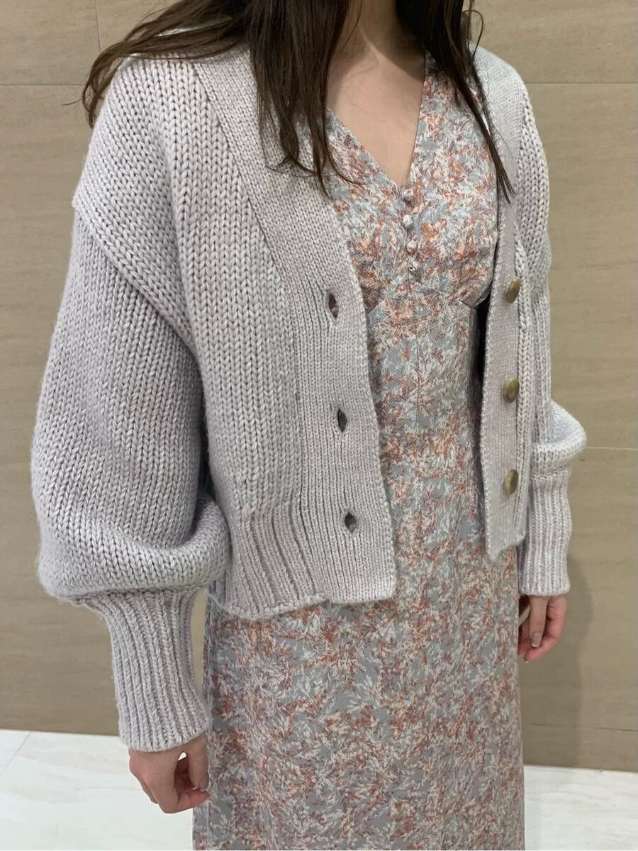 すっきりとしたショート丈なので、バランスが取りやすく使い勝手抜群。ワンピースやキャミソールなどの上から羽織るのはもちろんのこと、ボタンを全て閉めてニットプルオーバー風に着るのも素敵です。