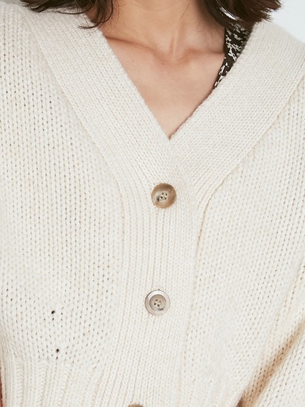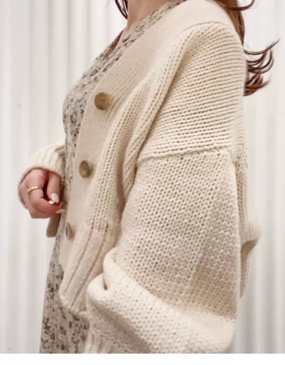ざっくり編まれたローゲージでルージーに羽織れるカーディガンです。全体的にオーバーサイズなお作りに。