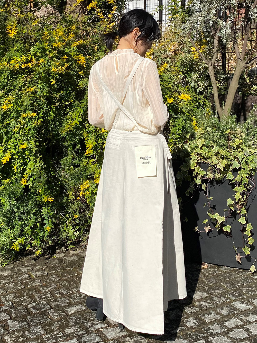 一歩先行くカジュアルを叶えるデニムワンピースは、デニムブランドHelthy DENIMとSNIDELのコラボアイテム。柔らかなデニム生地を贅沢に使い、ドラマティックに広がるフィット&フレアに仕上げました。ストラップが背中でクロスするデザインになっており、後ろ姿も印象的に魅 素材 綿92%、ポリエステル6%、ポリウレタン2% サイズ表記 総丈 ウエスト ヒップ 肩ひも(1本) F 114cm 72cm 118cm 117cm