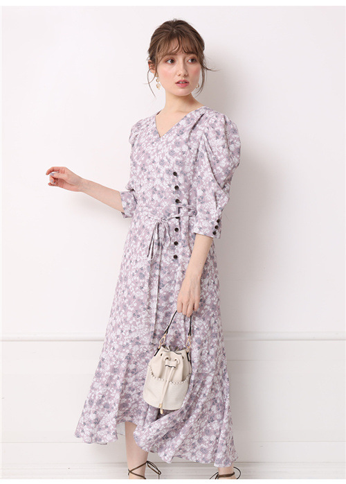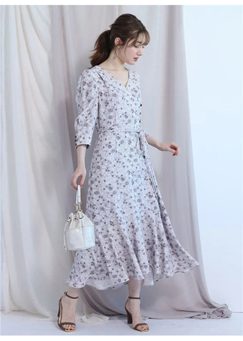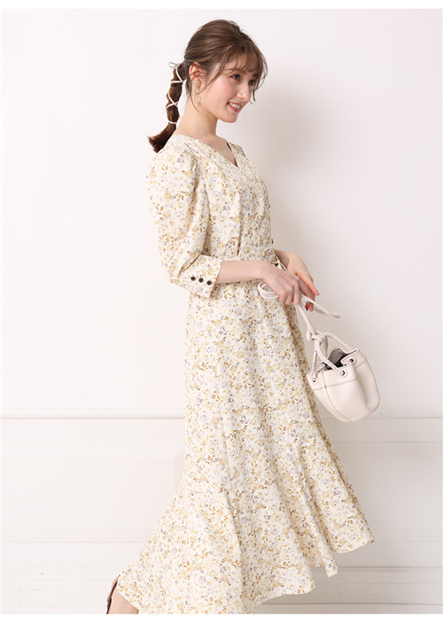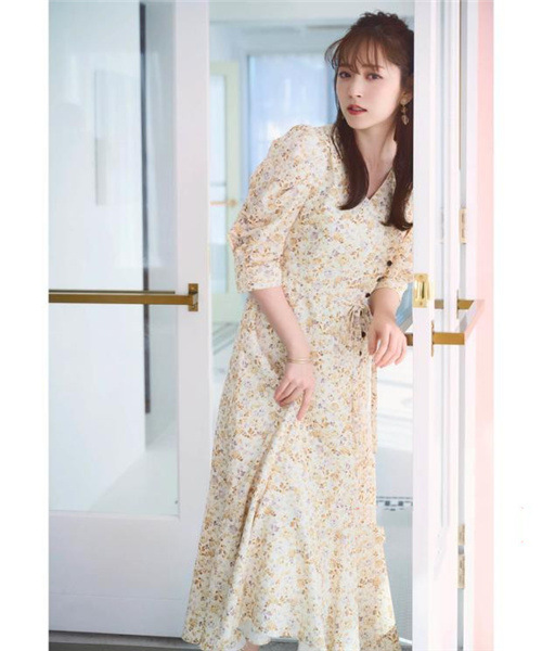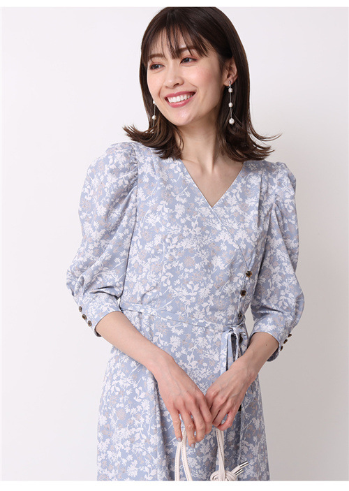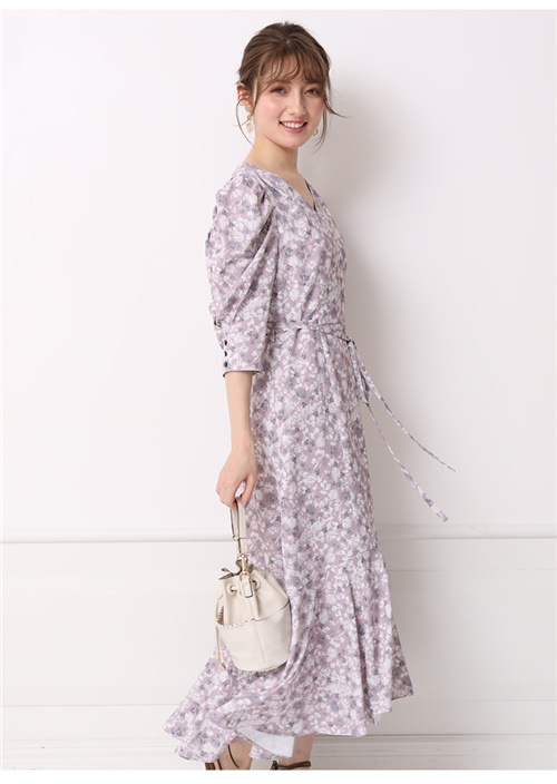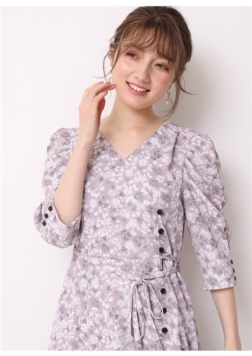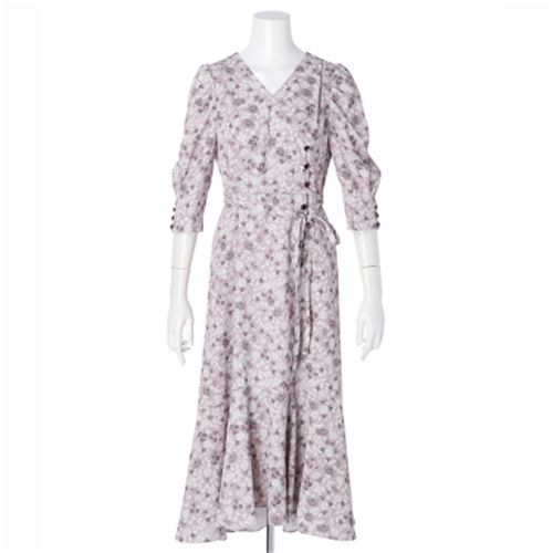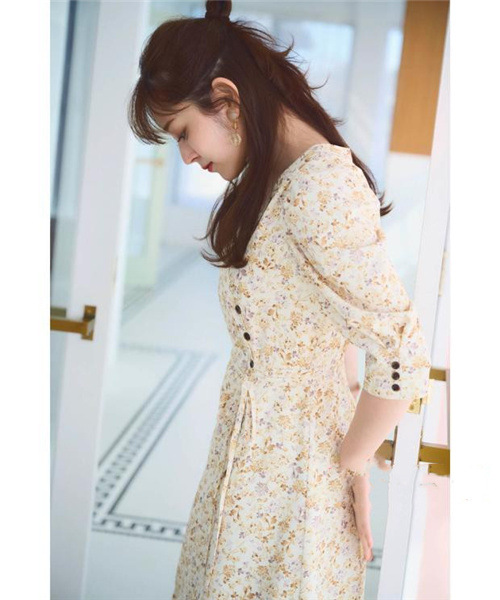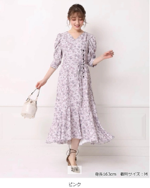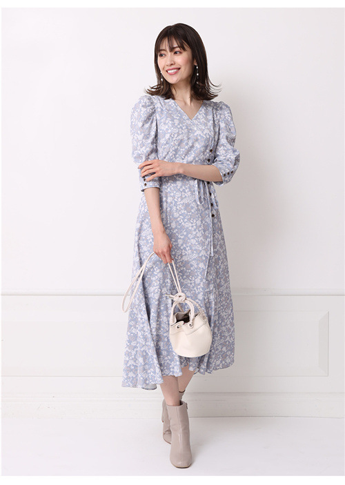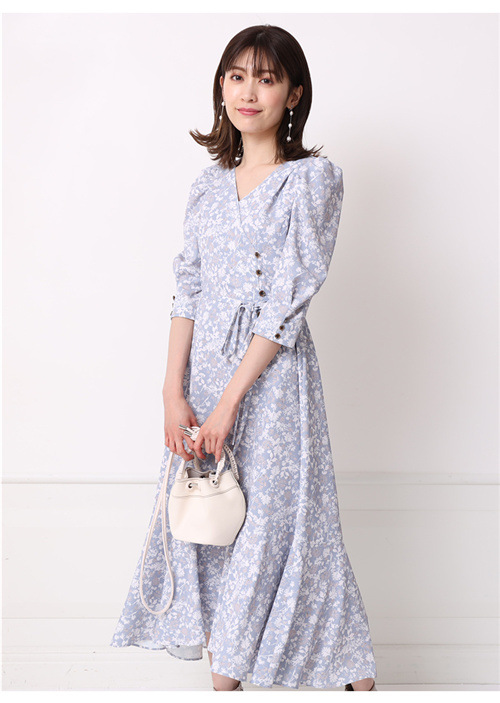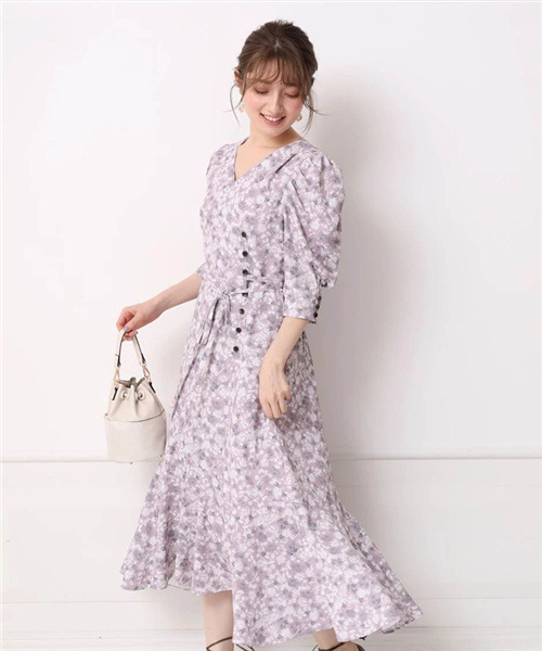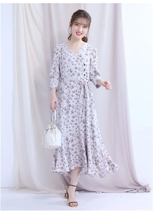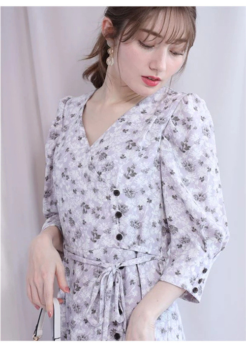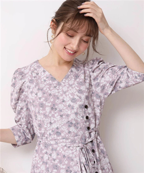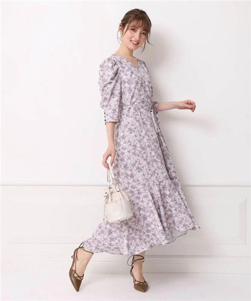 淡い繊細なフラワー柄がフェミニンムードを漂わせるワンピース。
