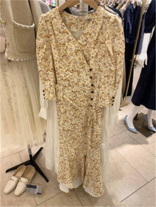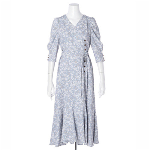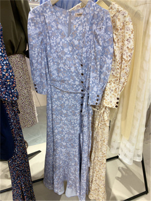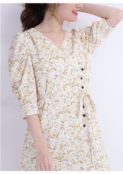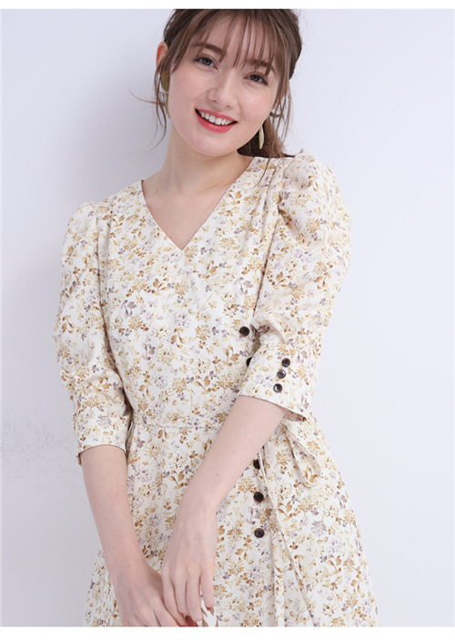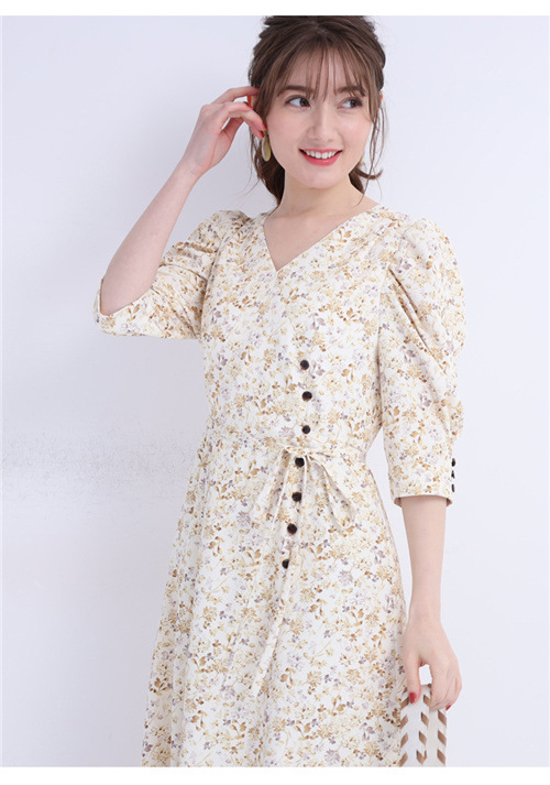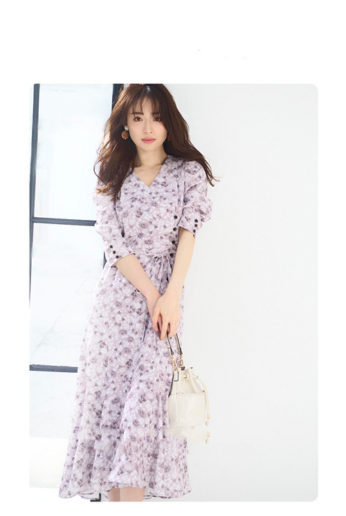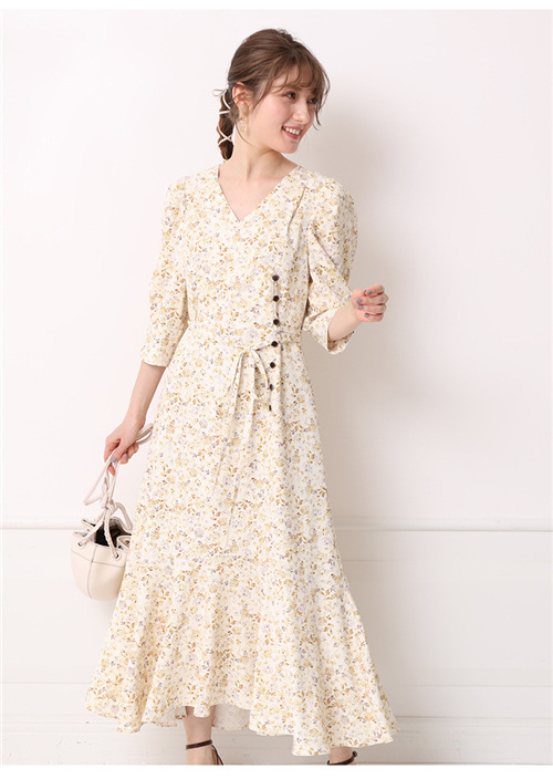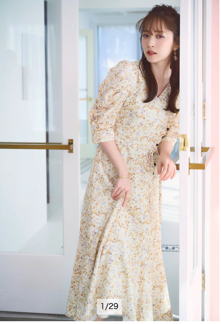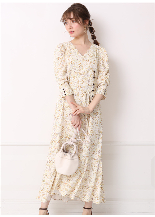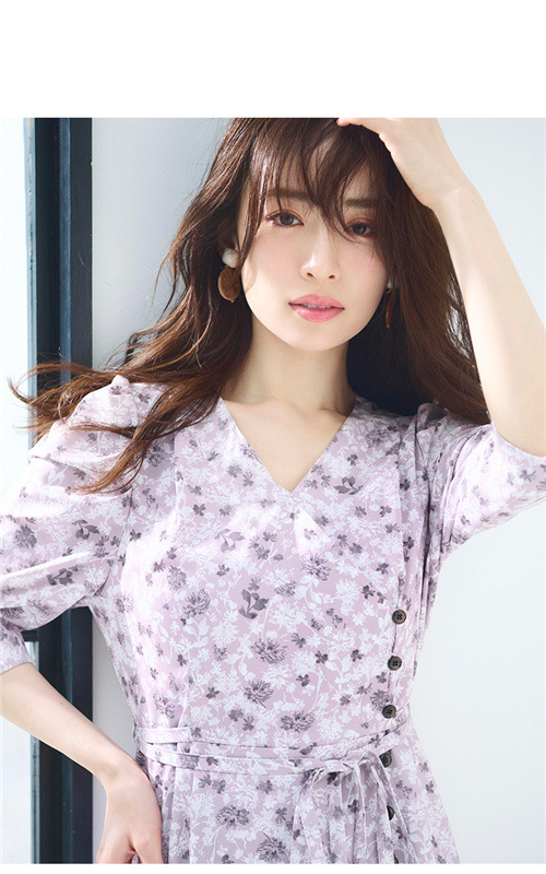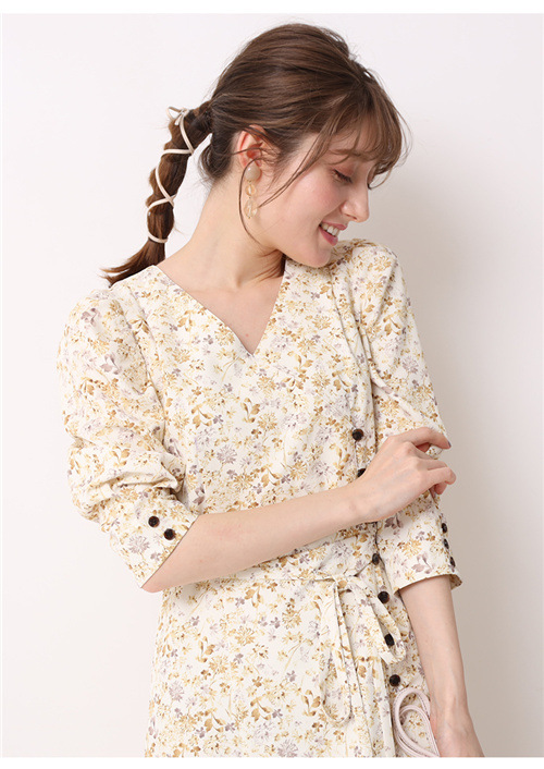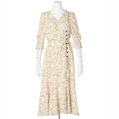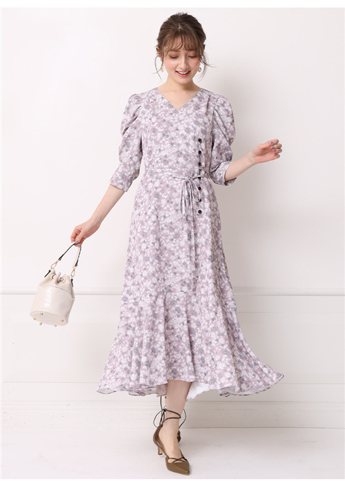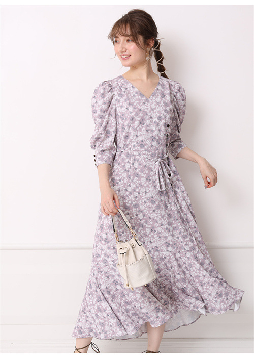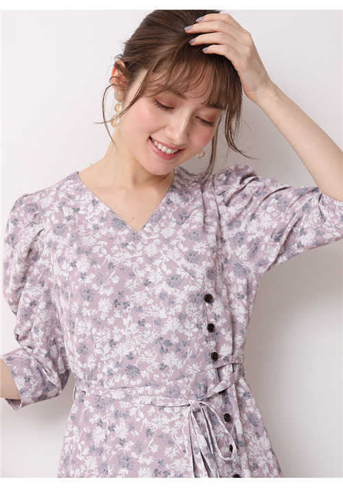 淡い繊細なフラワー柄がフェミニンムードを漂わせるワンピース。