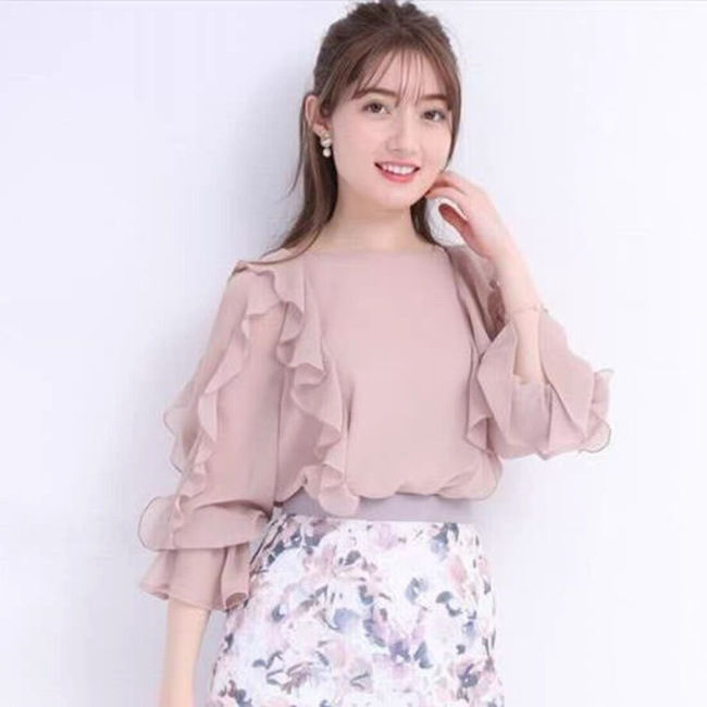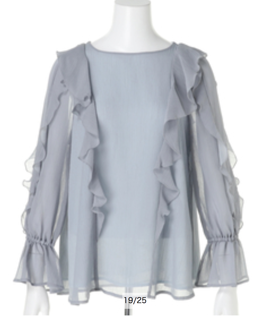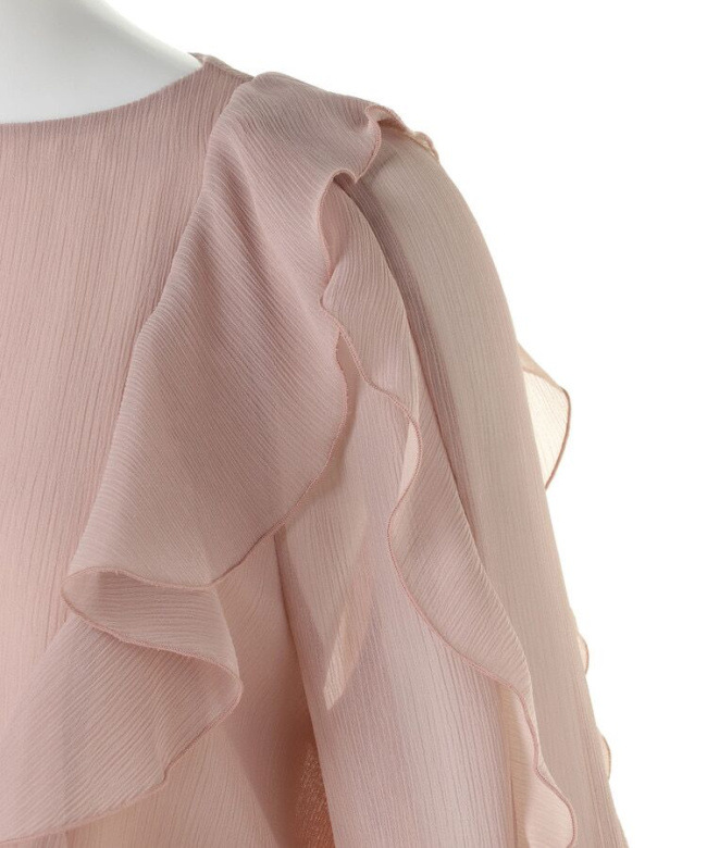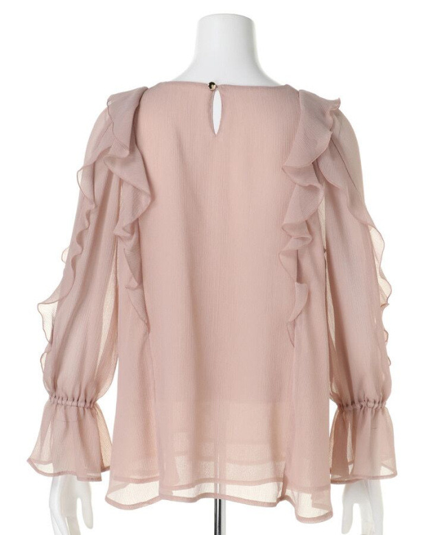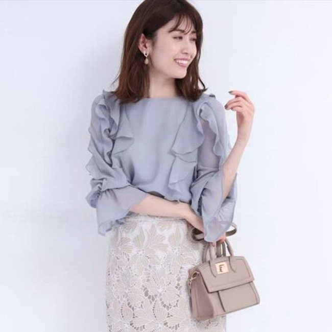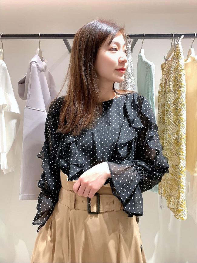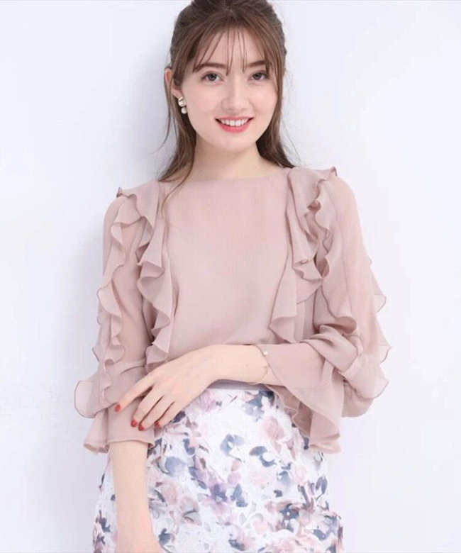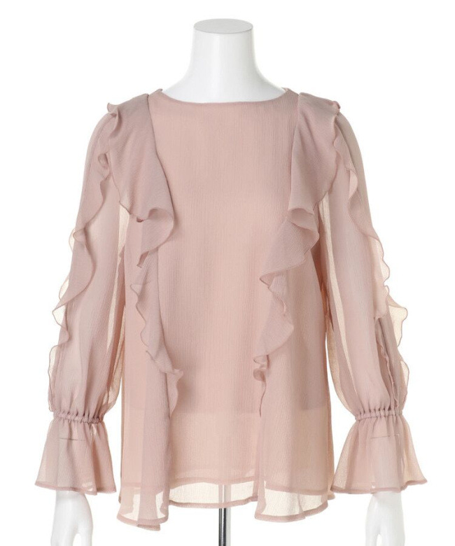 ふんわりとしたエアリーなフリルが、女性らしいエレガンスを印象づけてくれるブラウス。
