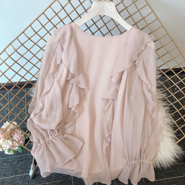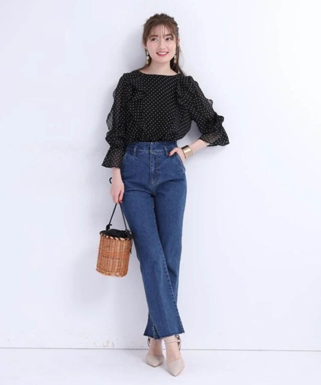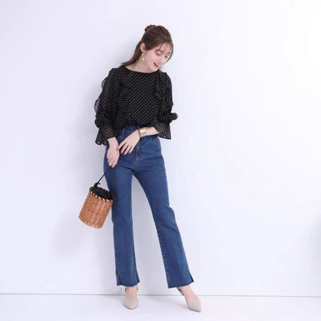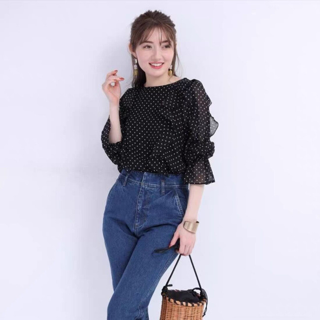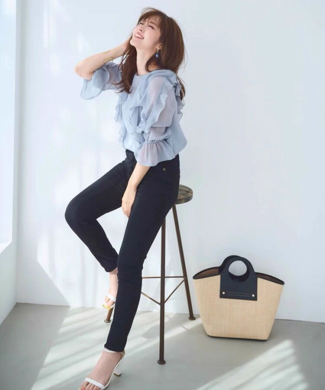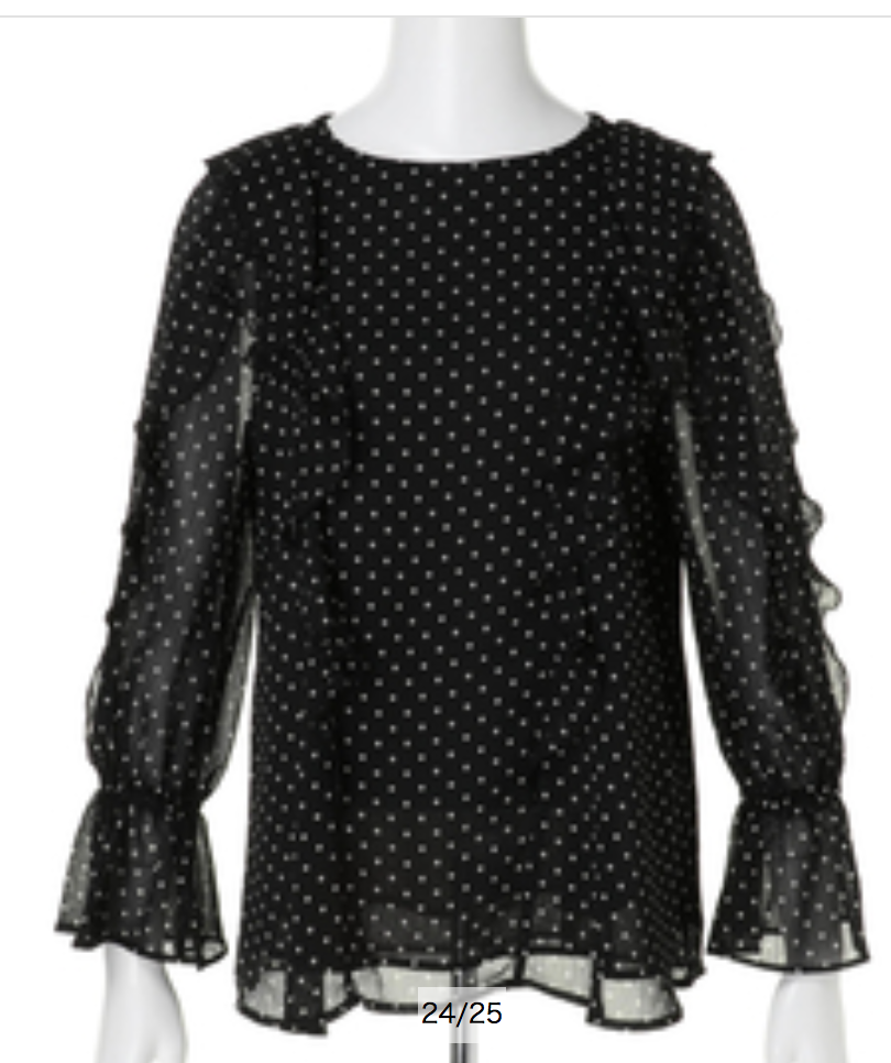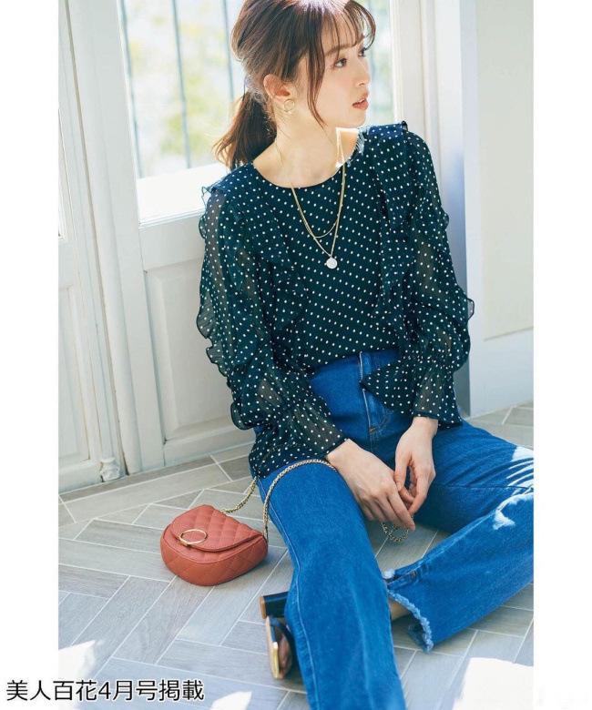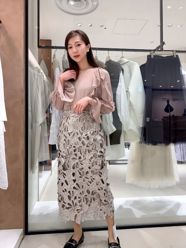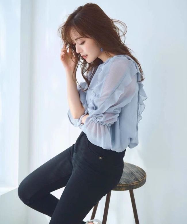 ふんわりとしたエアリーなフリルが、女性らしいエレガンスを印象づけてくれるブラウス。