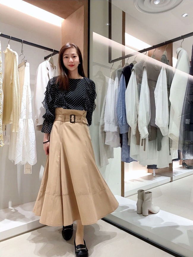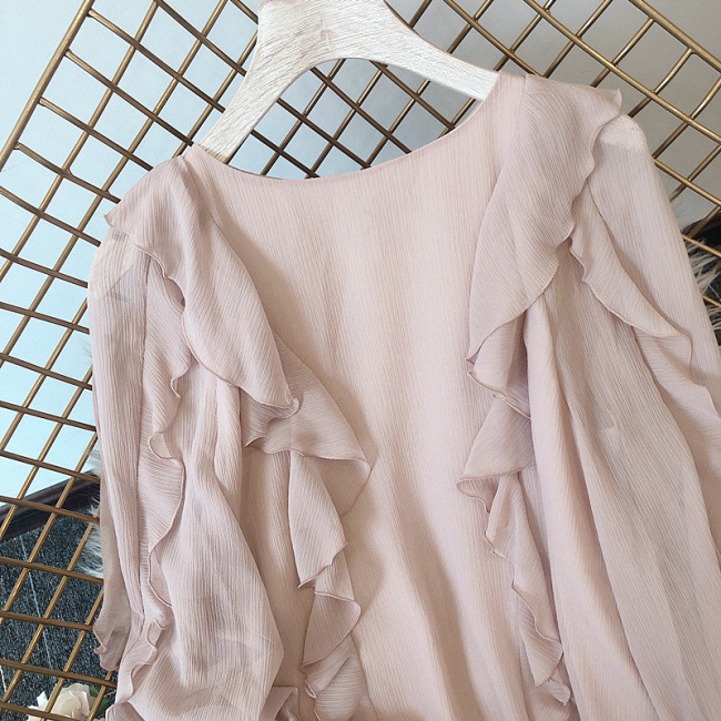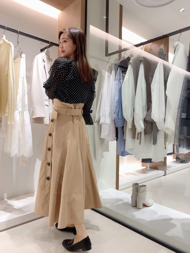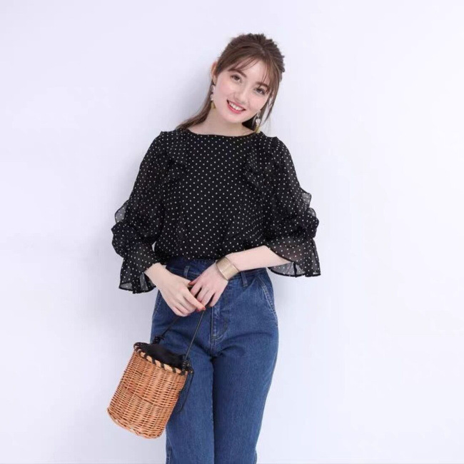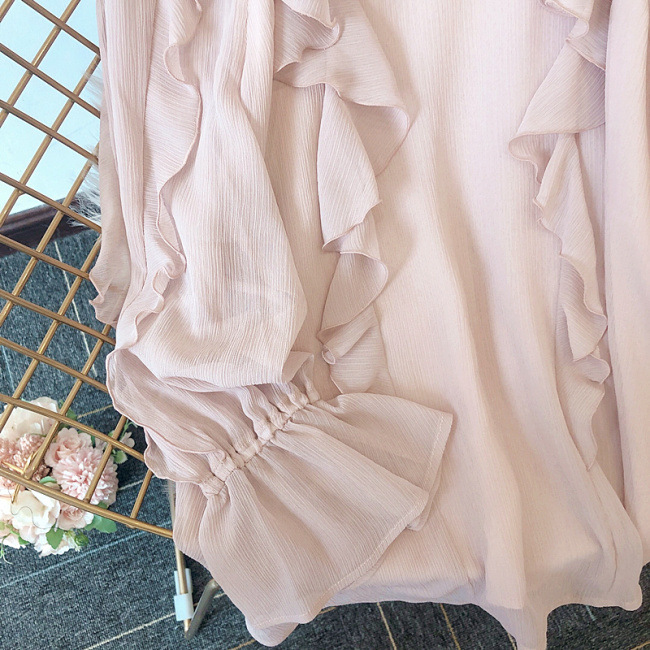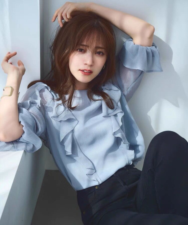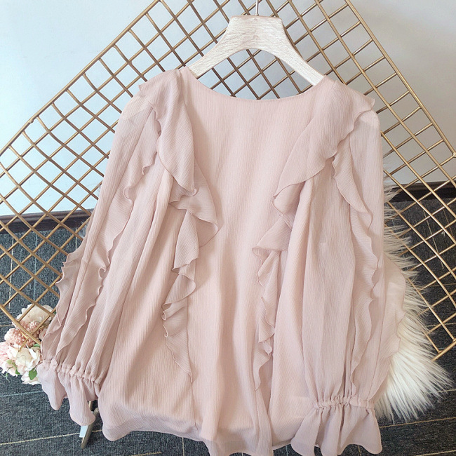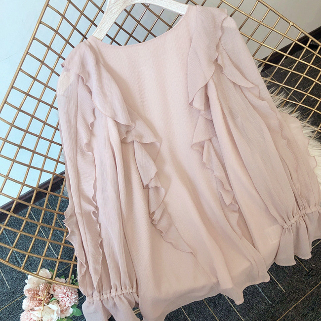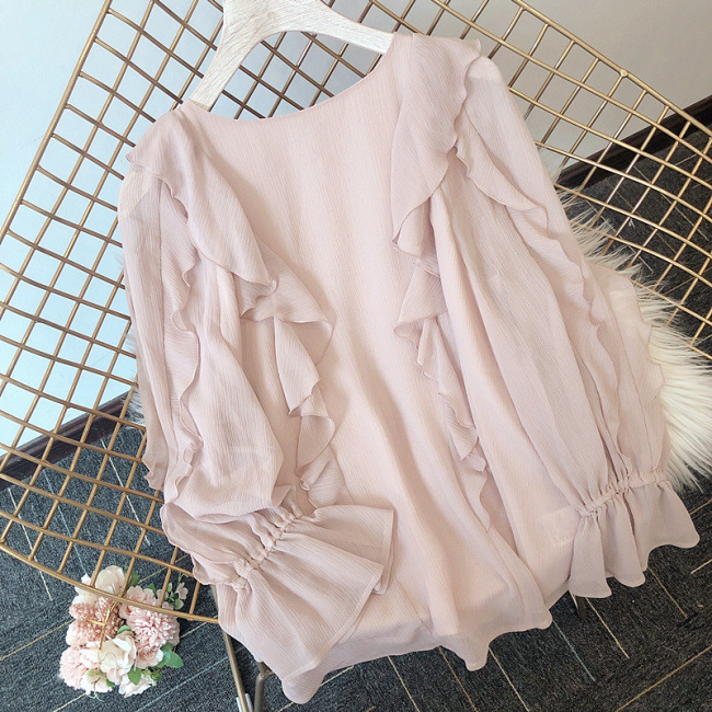 ふんわりとしたエアリーなフリルが、女性らしいエレガンスを印象づけてくれるブラウス。