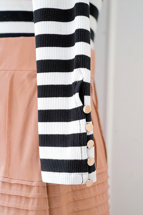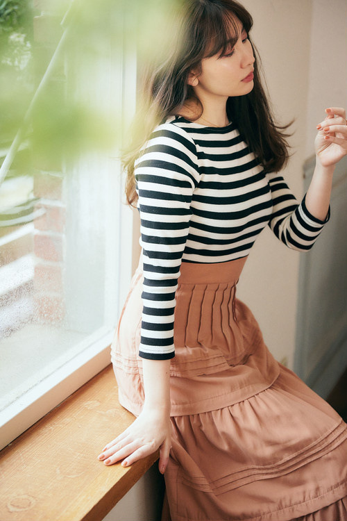 トップのボーダー部分は柔らかなリブを使用したカットソー素材。