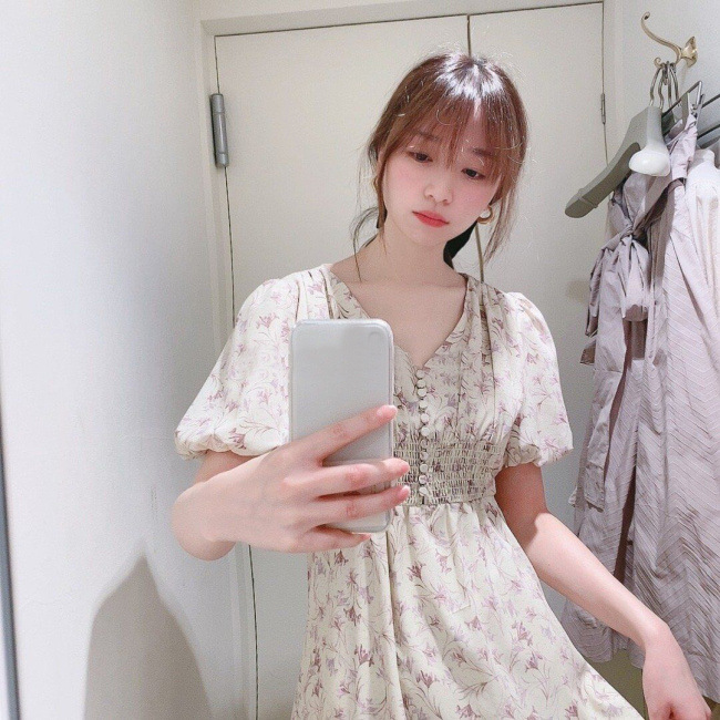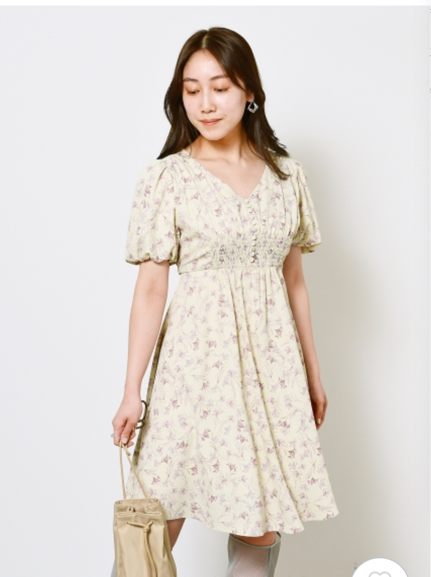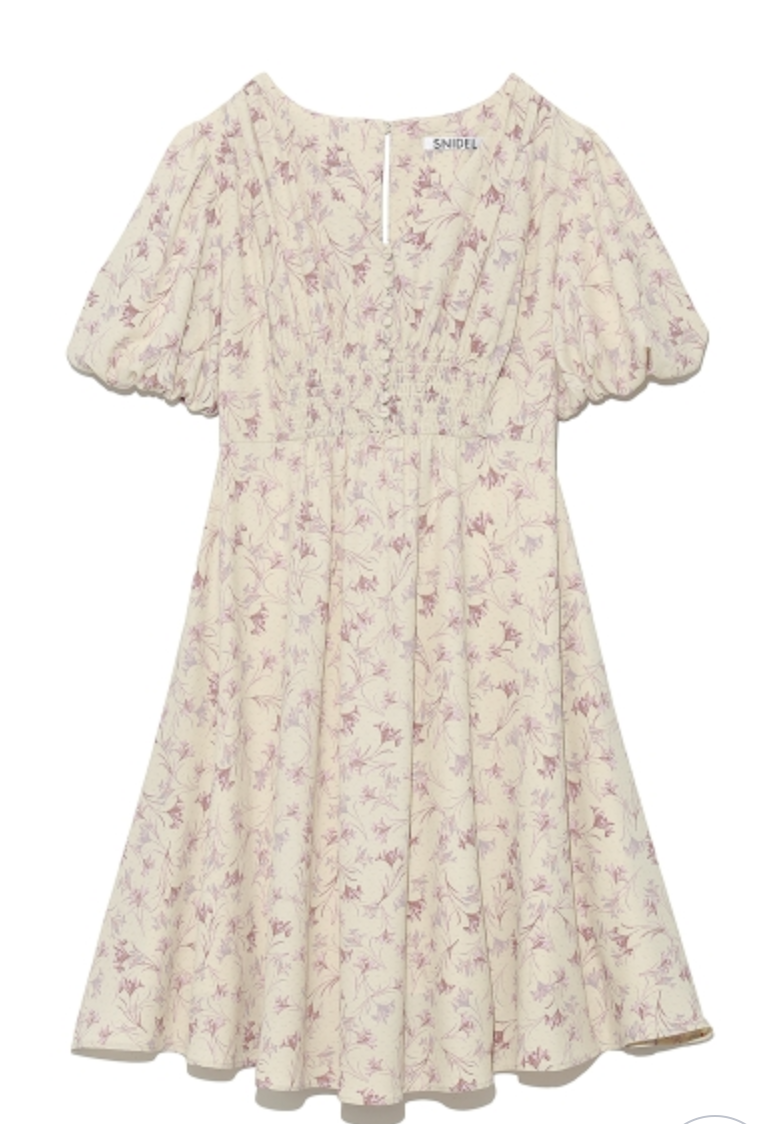 華やかに仕上がるSNIDEL人気のプリントワンピース。ミニ丈で仕立てることでトレンド感をプラスしました。