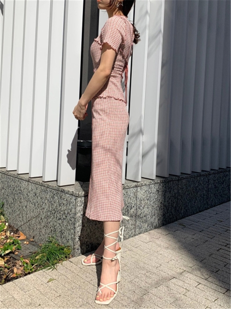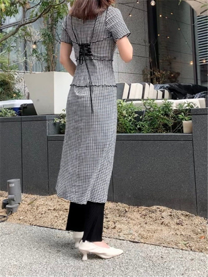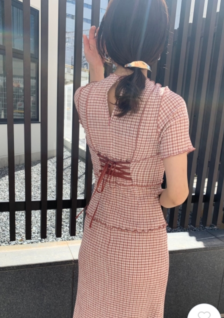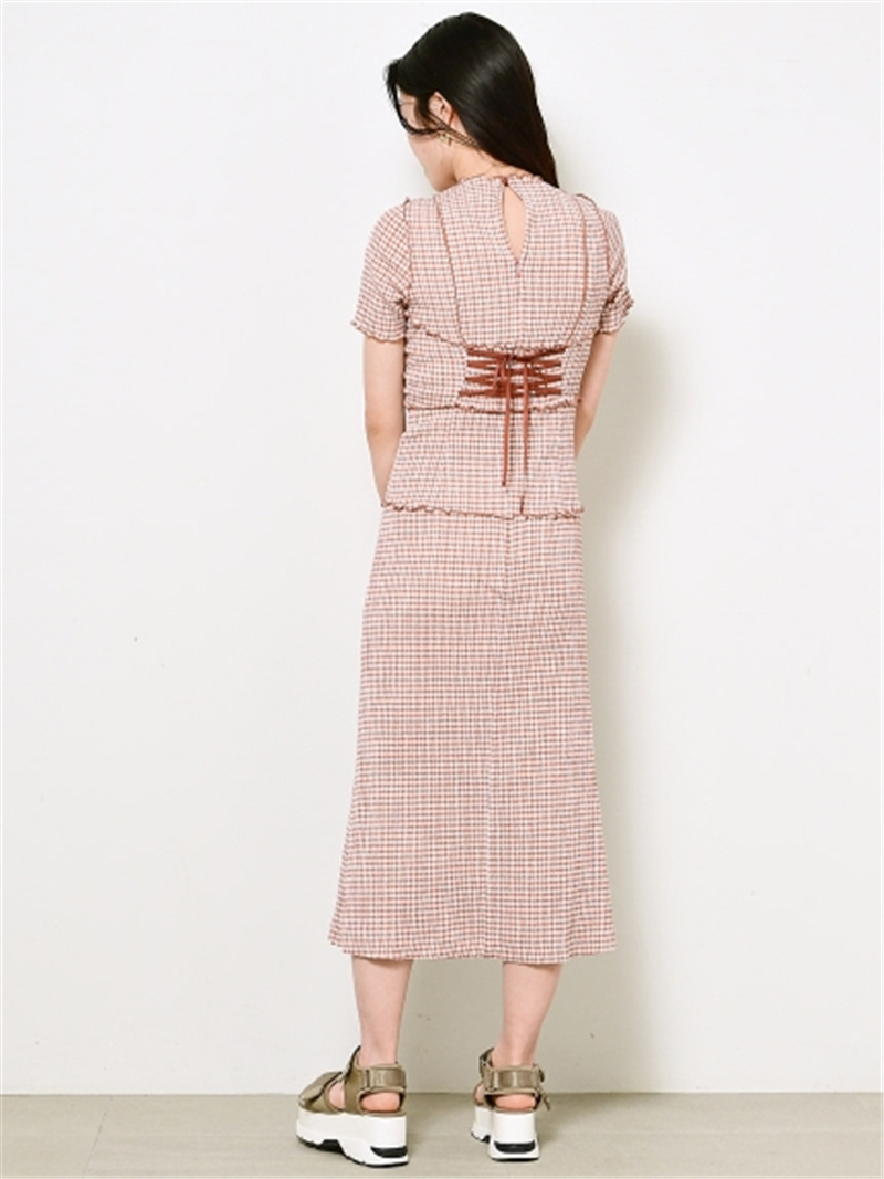 バックスタイルにはレースアップを施し、後ろ姿も抜かりなく。今季はパンツとのレイヤードスタイルもおすすめです。