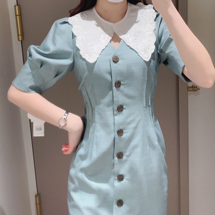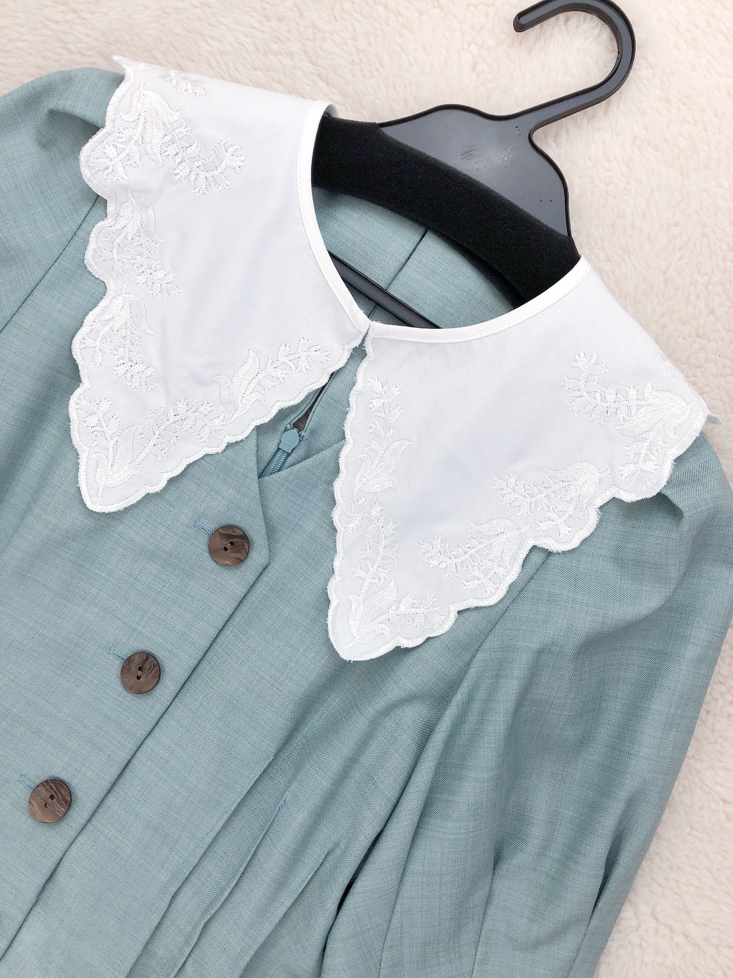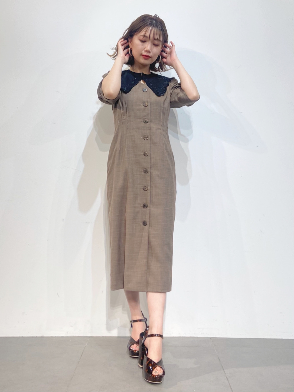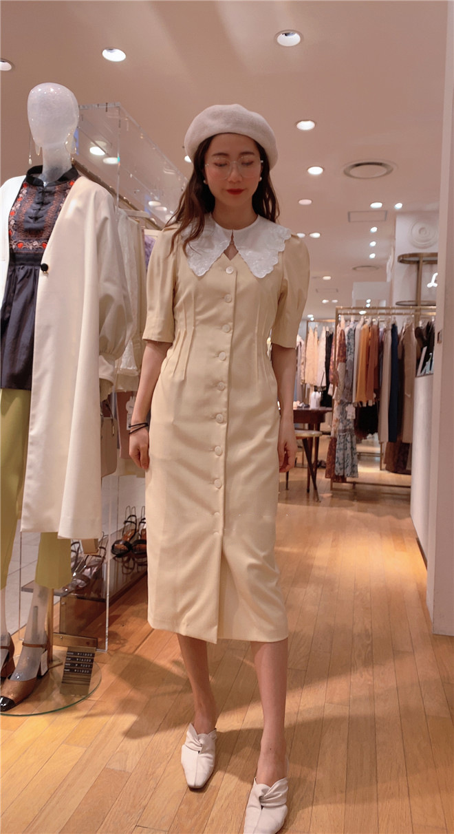Lily Brown定番のフロントボタンワンピースが今季も登場しました。大きめのコットンつけ襟をセットし、トレンド感とガーリームードたっぷりに。襟を外すとシンプルなVネックになっており、異なるふたつの表情で楽しめます。つけ襟は単品使いも可能なので、お手持ちのニットやカットソーに合わせても◎。お好みのフィット感で着ていただけるように、サイズは2展開ご用意し、バックウエストをゴム仕様にしました。