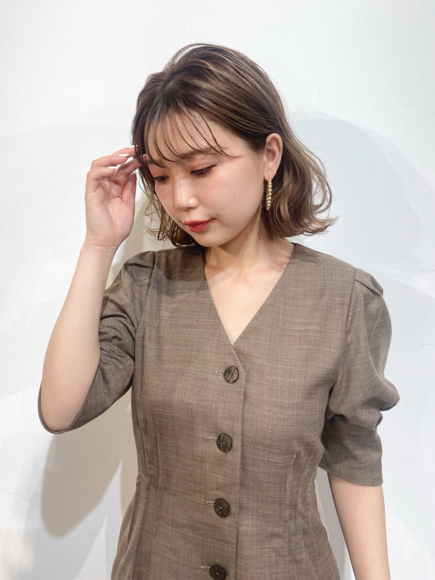 程よいハリとツヤのある素材を使用しました。薄手でありながらもシワになりくく、デイリーに使えます。色は2色をMIXしたようなニュアンスカラーに。トレンドのイエロー、ダスティトーンで着やすいブルー、落ち着きのあるブラウンの3色展開です。
