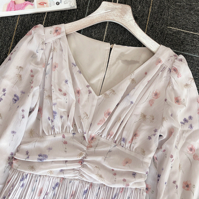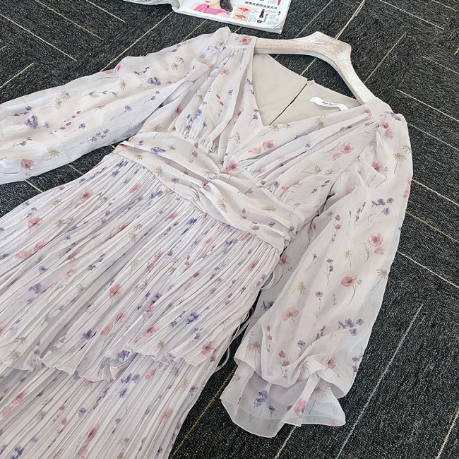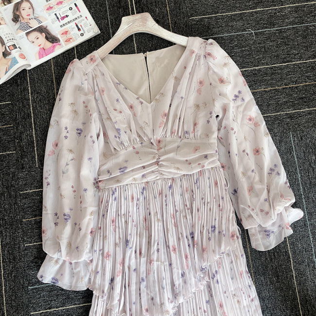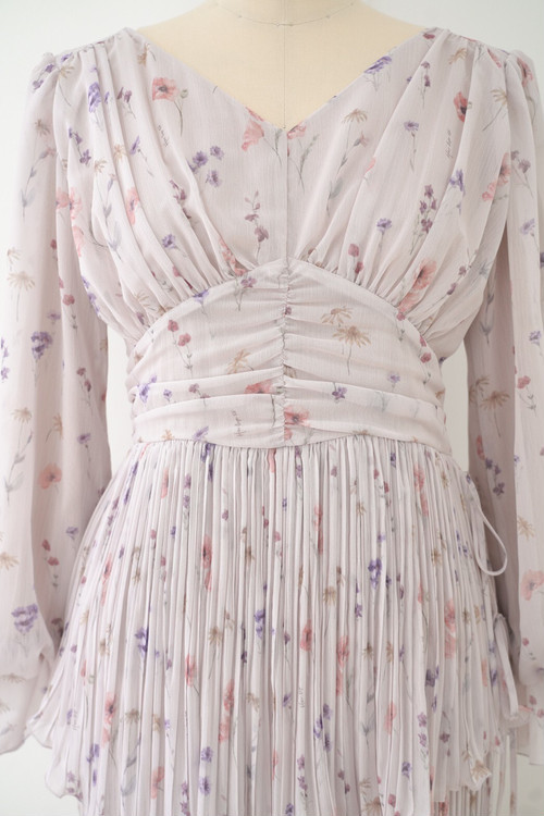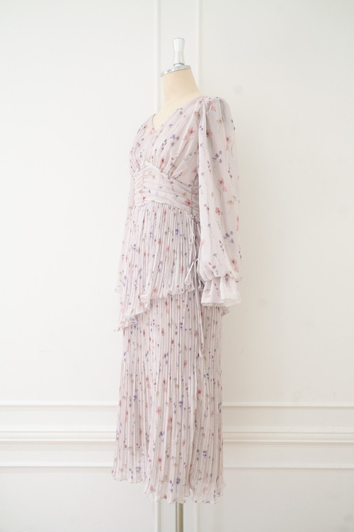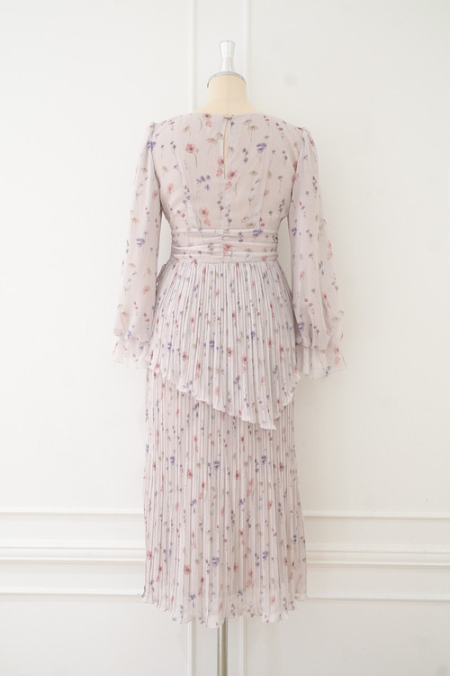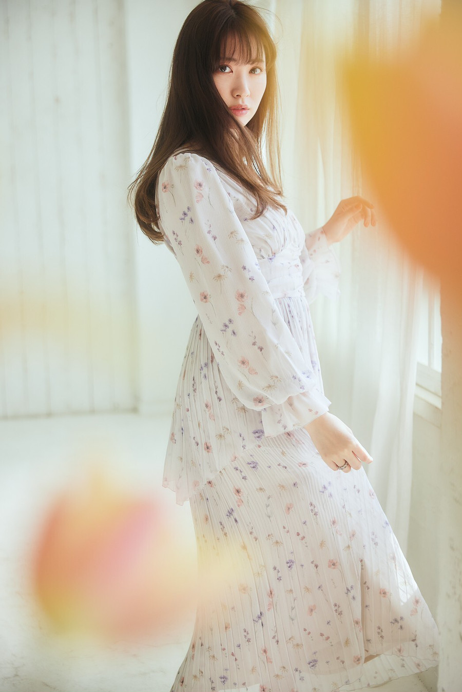 スカート部分にはランダムプリーツを配し、胸下の切り替えがスタイルアップに魅せてくれるアイテムです。