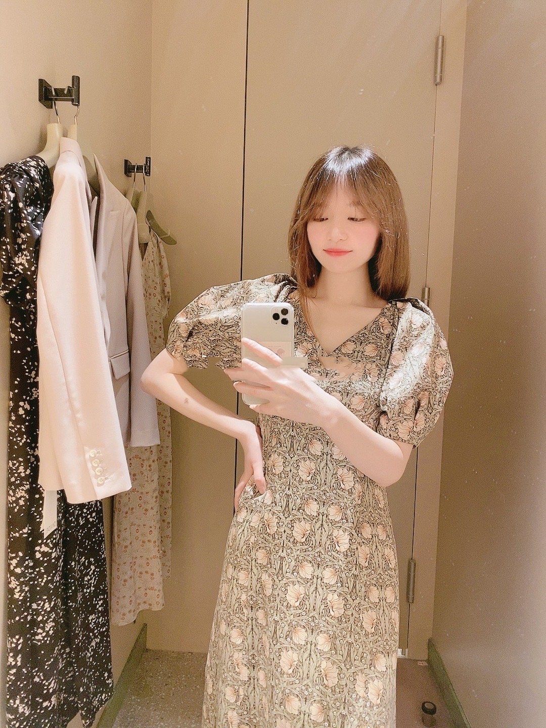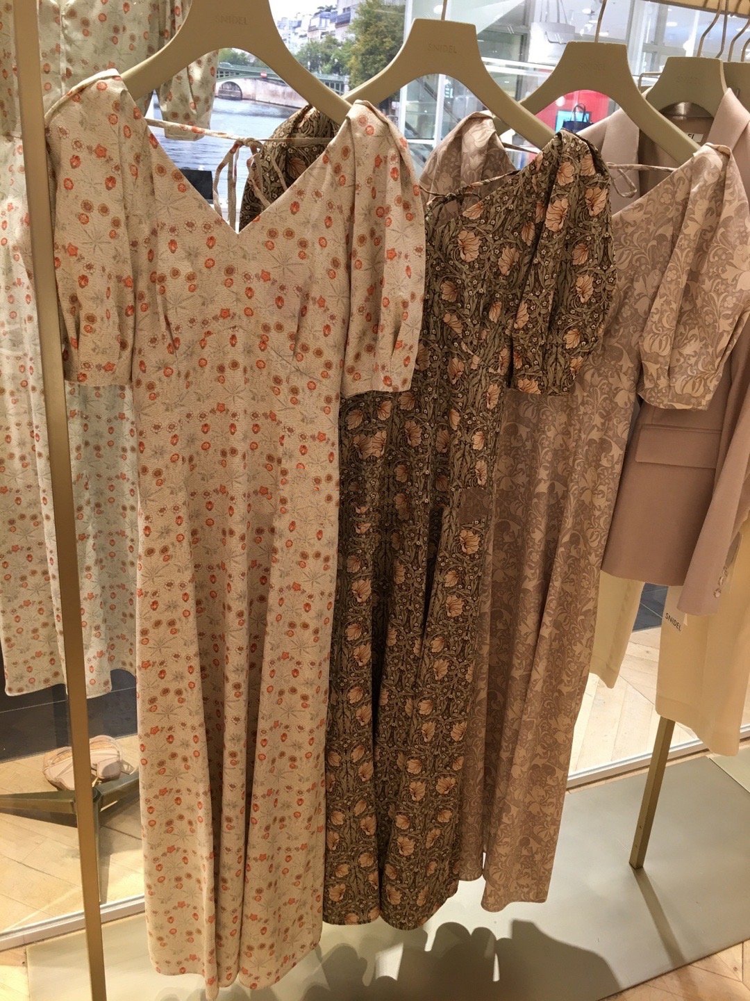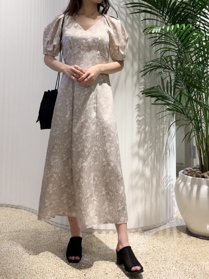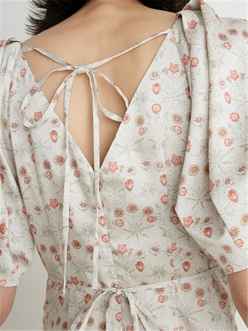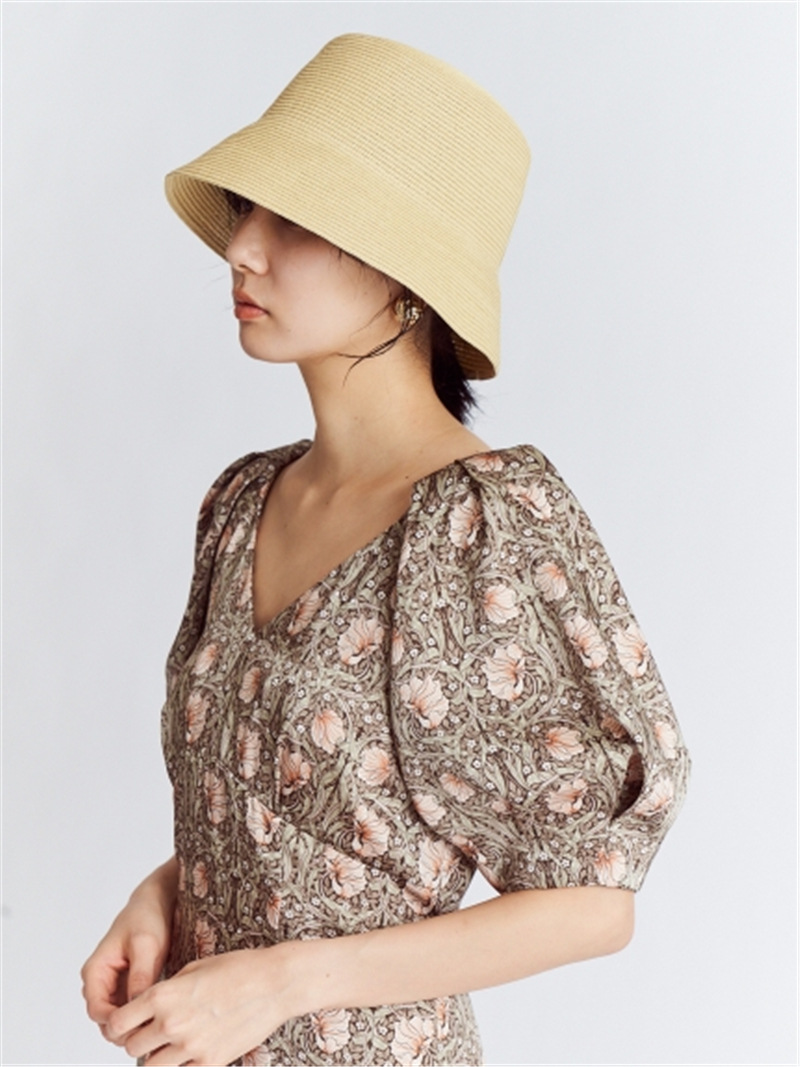 リサイクルポリエステル100%の、艶のあるツイル生地で仕立てたプリントワンピース。描いたパターンは、19世紀にデザイナーとして活躍した「WILLIAM MORRIS(ウィリアム モリス)」とのコラボレーション。有機的な植物モチーフの図案を採用しています。ラグランスリーブから深めのタックを取って立体感を出したボリュームスリーブが、デコルテラインを華奢に魅せ小顔効果も期待。バスト下にはパネル切り替えを施し、身体の線を美しく魅せるシルエットでスタイルアップを叶えます。ウエストにあしらったリボンは、調整が可能です。