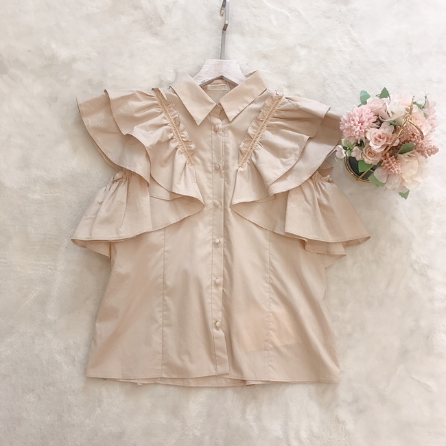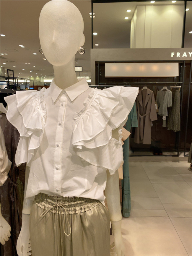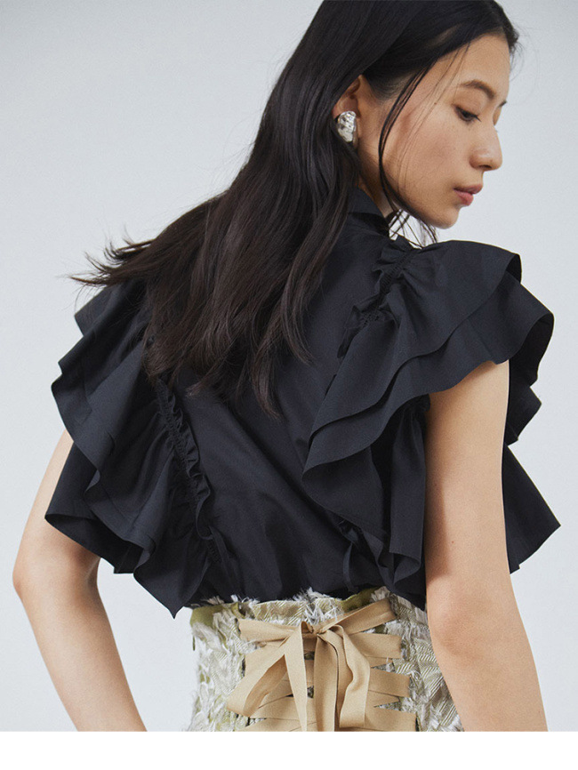 ラッフルフリル襟付きブラウス