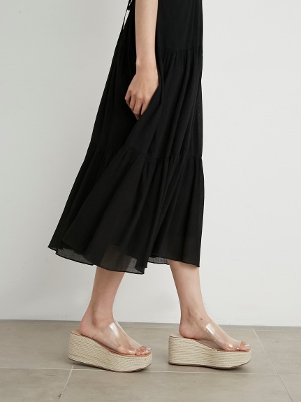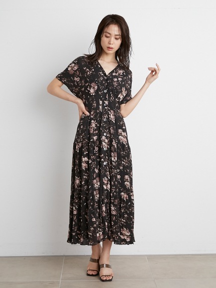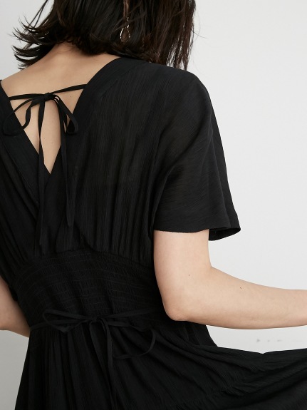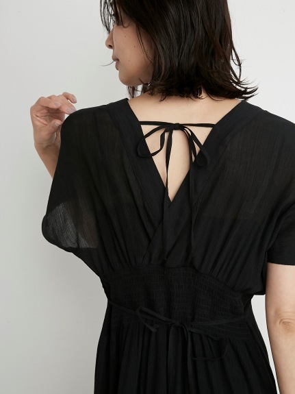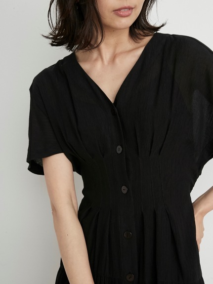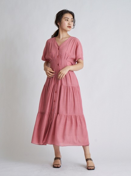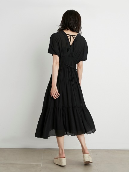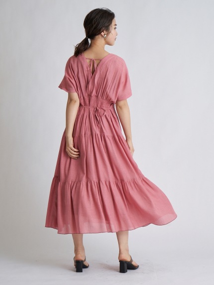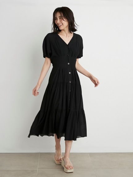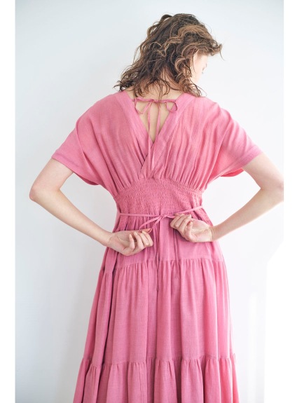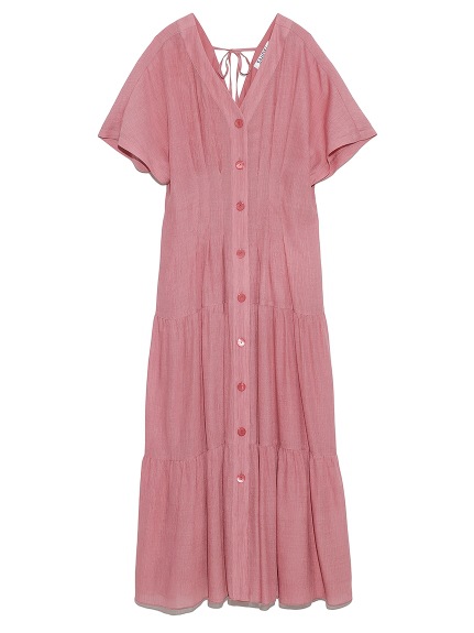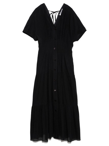 昨年大好評だったフロントボタンワンピースが、アップグレードされてこの夏も登場。表情のある楊柳シフォンが柔らかな雰囲気を纏い、程良くゆとりのあるサイズ感でこれからの季節に快適な着心地をお届けします。フロントにはタック、バックにはギャザーと前後で異なる仕様を施し、女性らしさのある立体的なシルエットを表現。リボンを飾った背中のV開きが色香を纏い、贅沢な生地分量と2段ティアードが華やかな装いです。