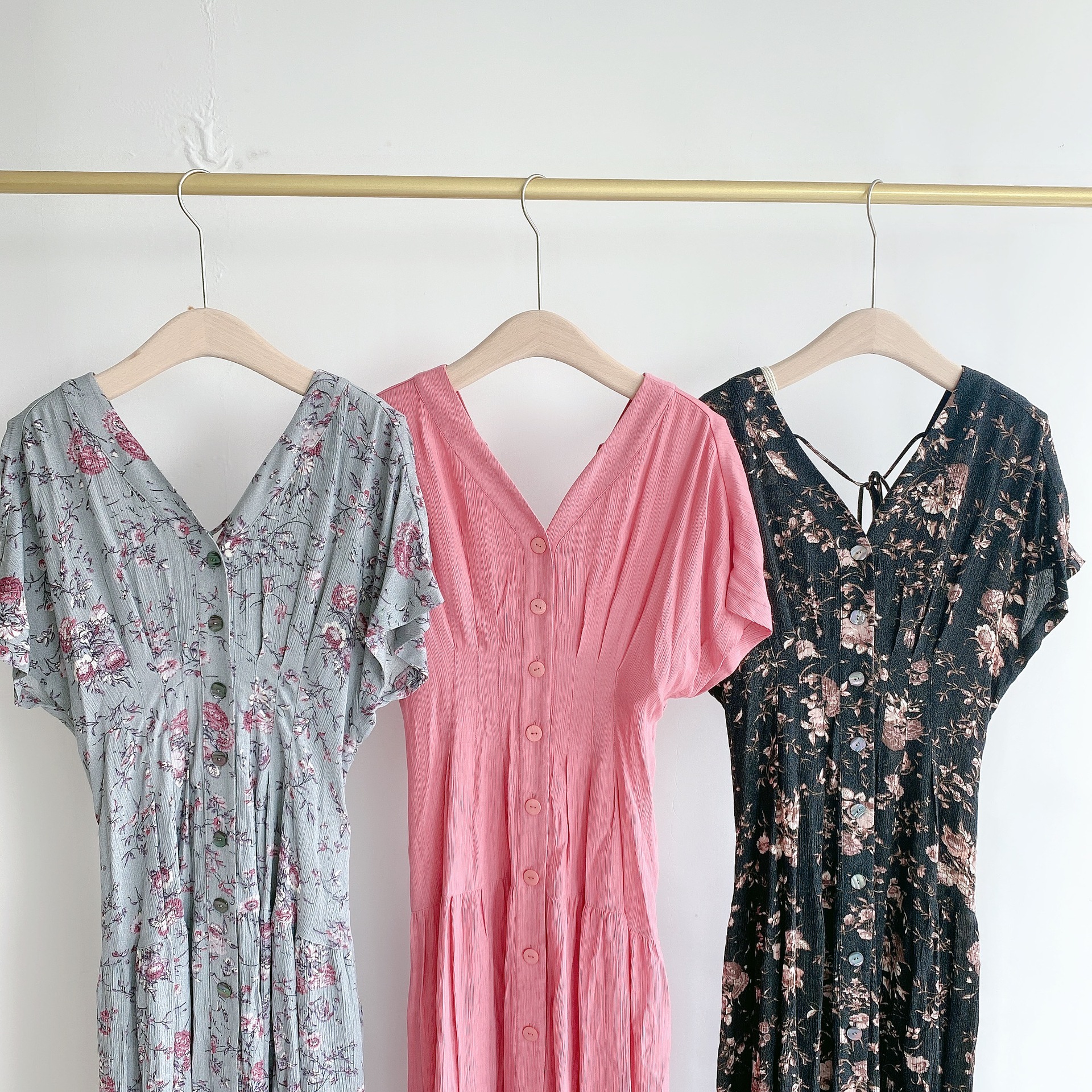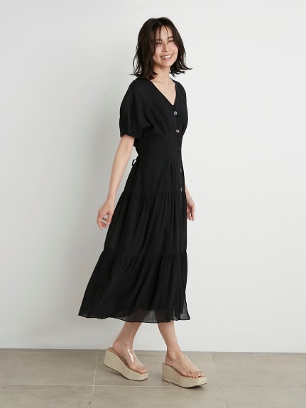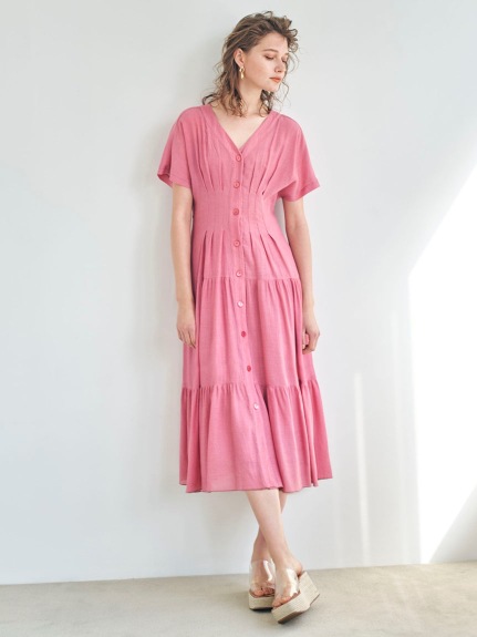 【リラックスな女性らしさ際立つフロントボタンワンピース】