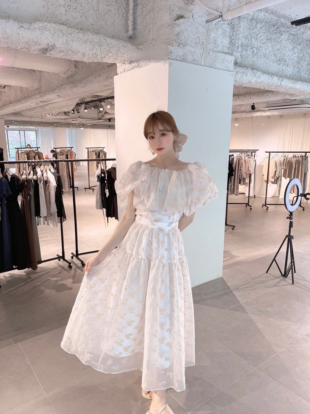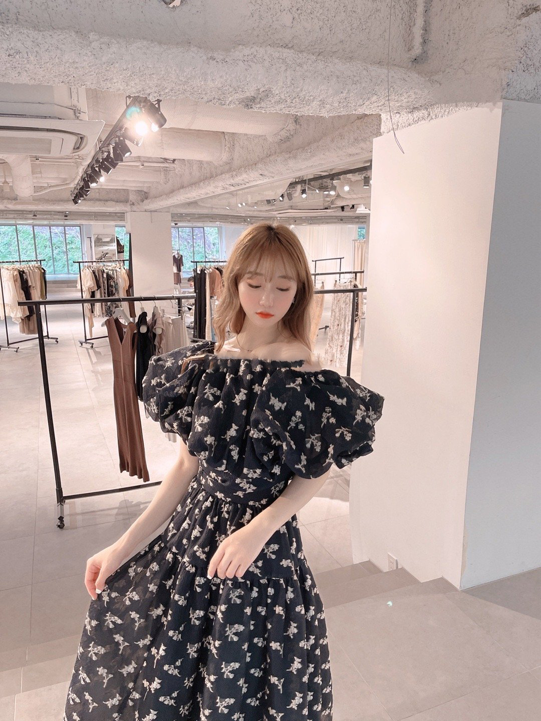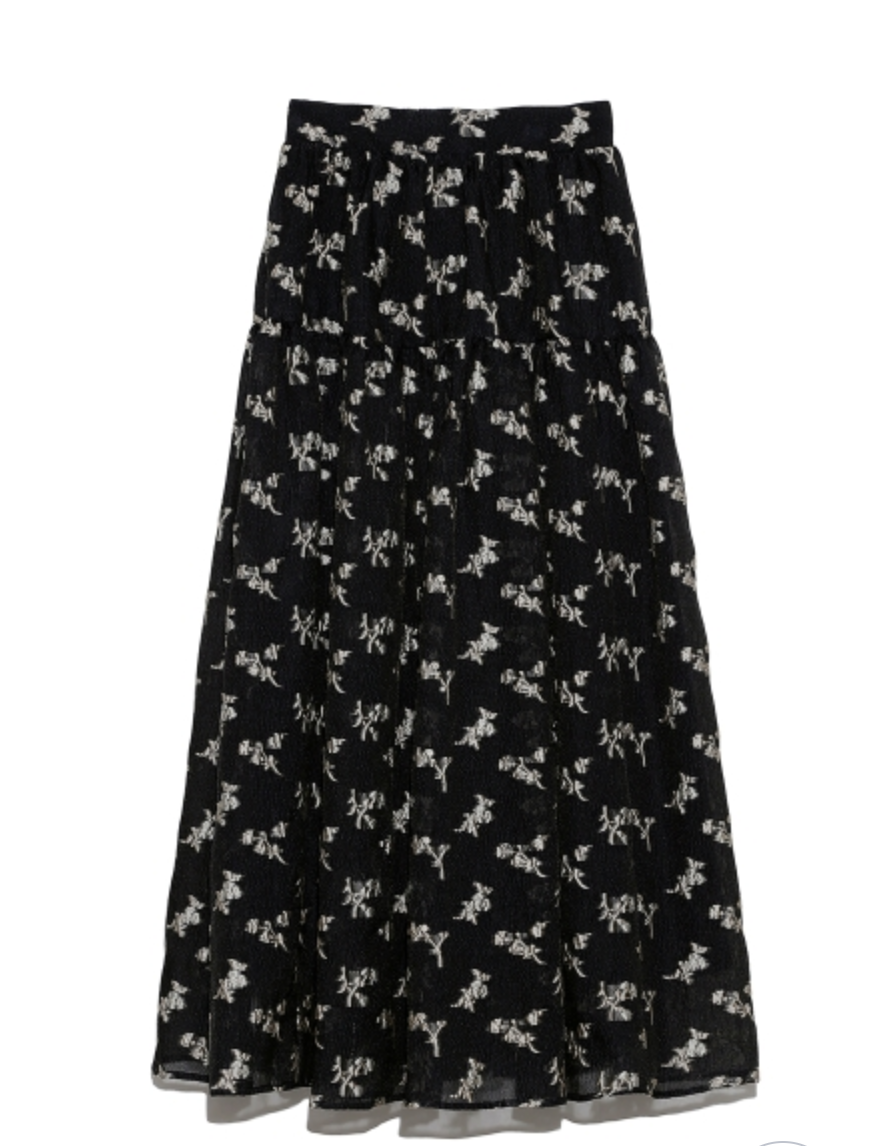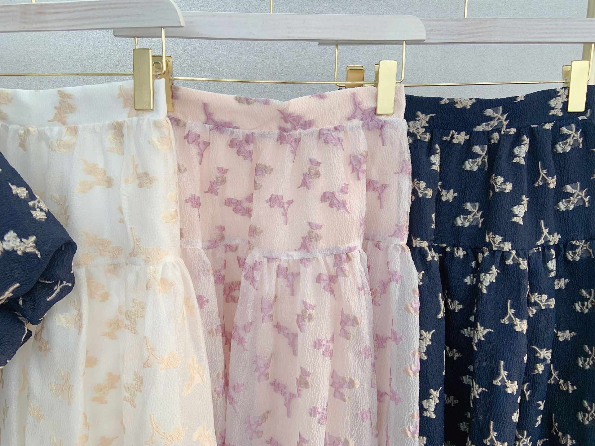 シックで繊細な小花が舞うジャガードスカートは、シアーな生地と刺繍のコントラストが奥行きを纏う1枚。生地の持つ独特のハリ感を活かし、今年らしいふんわりとしたボリュームを表現しました。ウエスト下のパネル切り替えはギャザーを少なくすることですっきりと、パネル下から裾にかけてはたっぷりの生地分量でドラマティックな印象に仕上げています。同じ花柄ジャガードで仕立てたブラウス(品番SWFB212033)とのセットアップなら、ワンピース見えのクラス感あるスタイリングが叶います。
