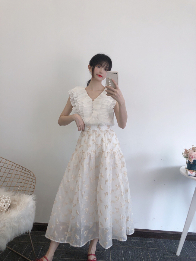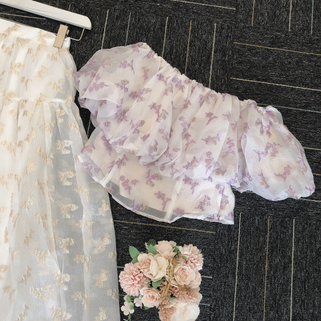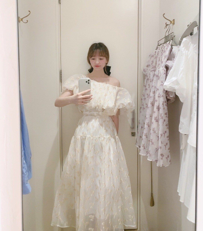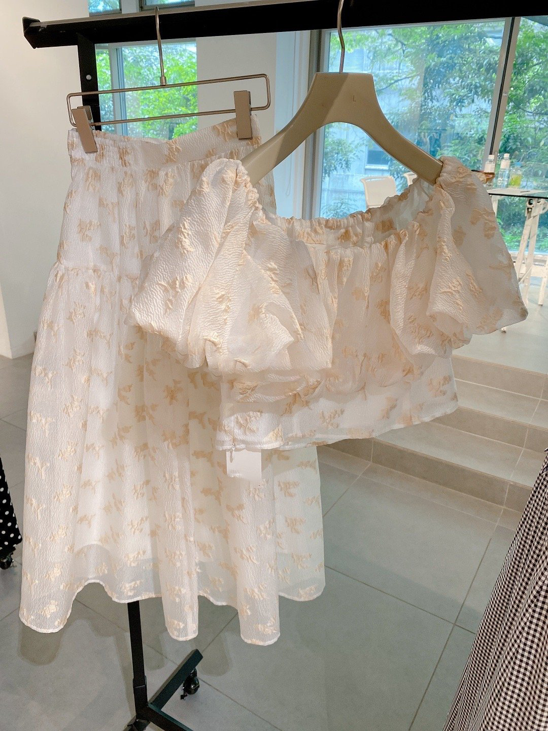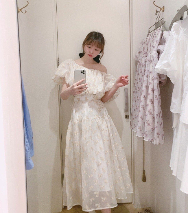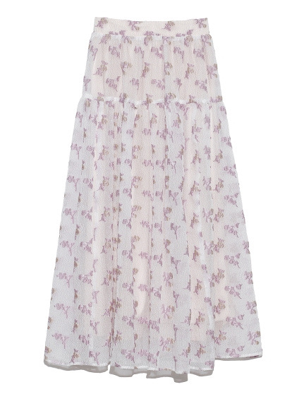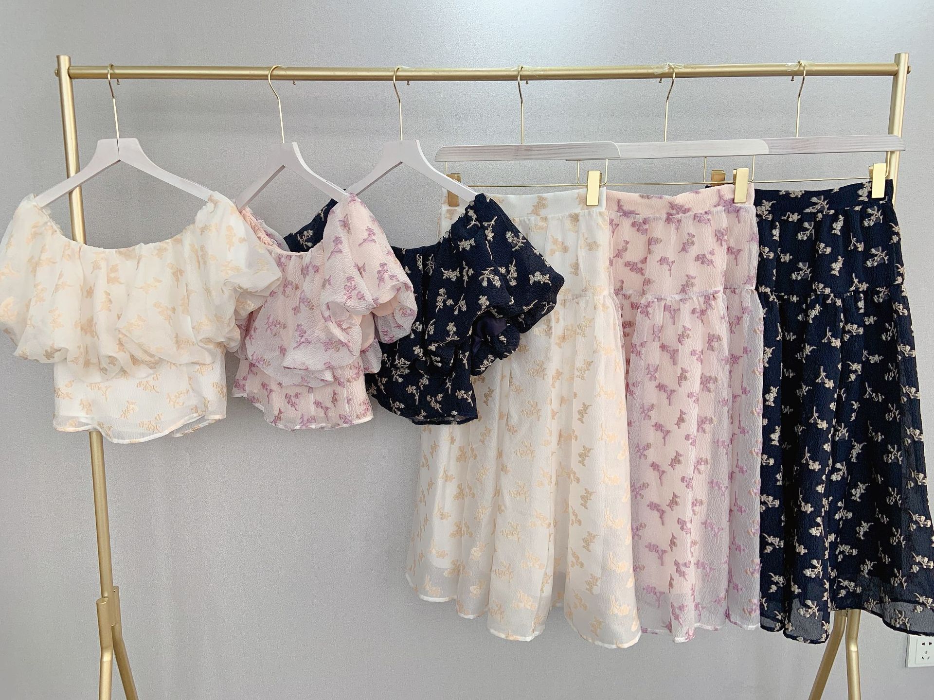 シックで繊細な小花が舞うジャガードスカートは、シアーな生地と刺繍のコントラストが奥行きを纏う1枚。生地の持つ独特のハリ感を活かし、今年らしいふんわりとしたボリュームを表現しました。ウエスト下のパネル切り替えはギャザーを少なくすることですっきりと、パネル下から裾にかけてはたっぷりの生地分量でドラマティックな印象に仕上げています。同じ花柄ジャガードで仕立てたブラウス(品番SWFB212033)とのセットアップなら、ワンピース見えのクラス感あるスタイリングが叶います。