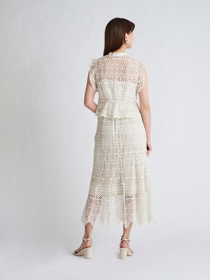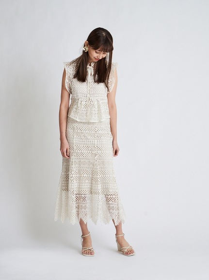 レースをボーダー状に組み合わせた華やかなコードレースブラウス。スタンドカラーのネックラインには、ボウタイリボンをあしらいました。前後着用可能なので、コーディネートに合わせ2WAYでお楽しみいただけます。同シリーズのスカート(品番SWFS212038)とのセットアップでオケージョンシーンに、デニムでカジュアルダウンしてデイリーにと、幅広いスタイリング力もポイントです。アイボリー、ベビーピンク、ミントの軽やかな3色展開です。