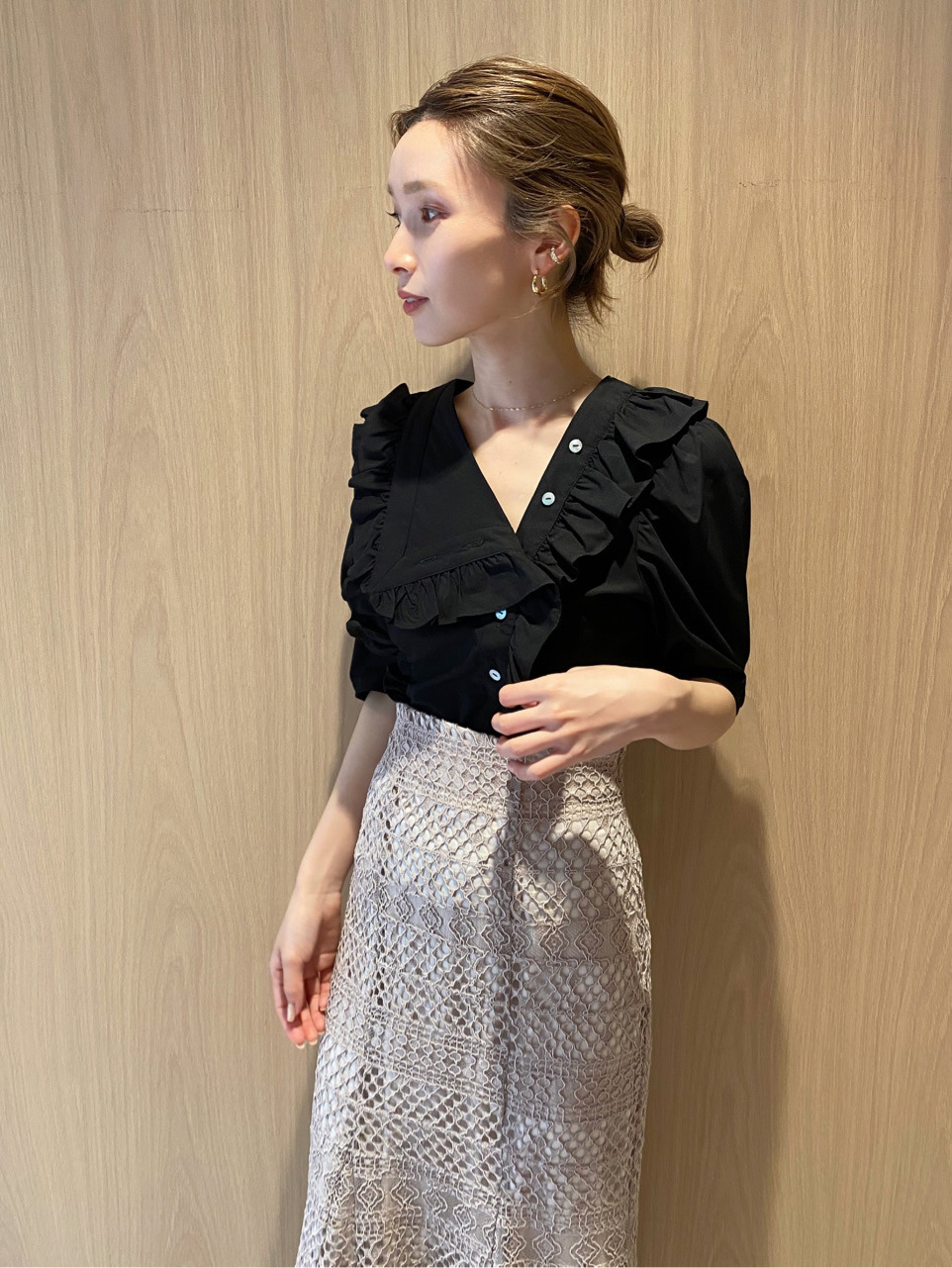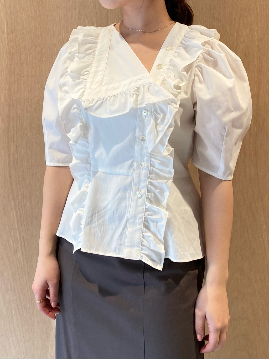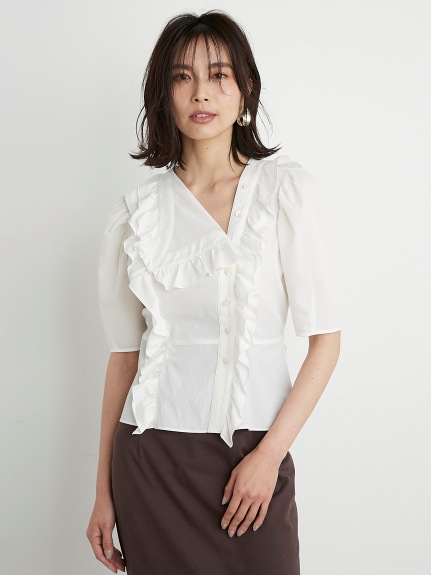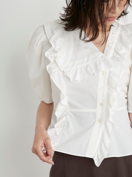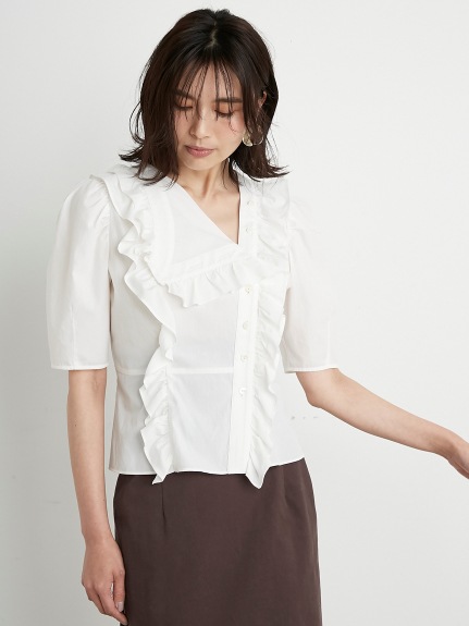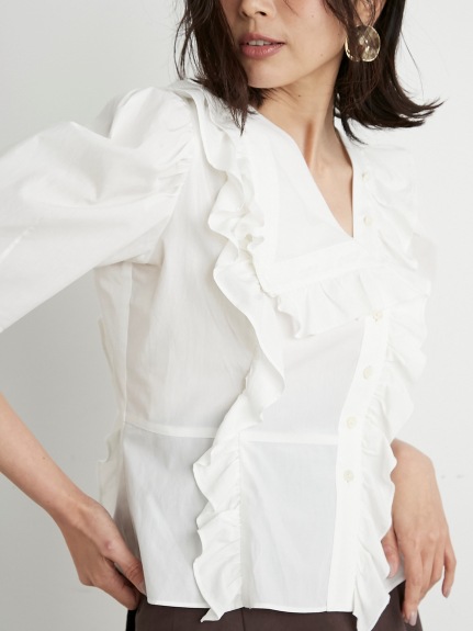 Sustainableフリルカラーブラウス