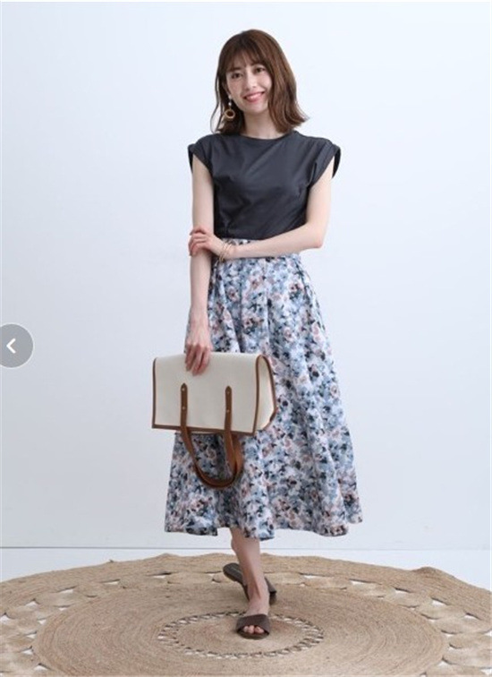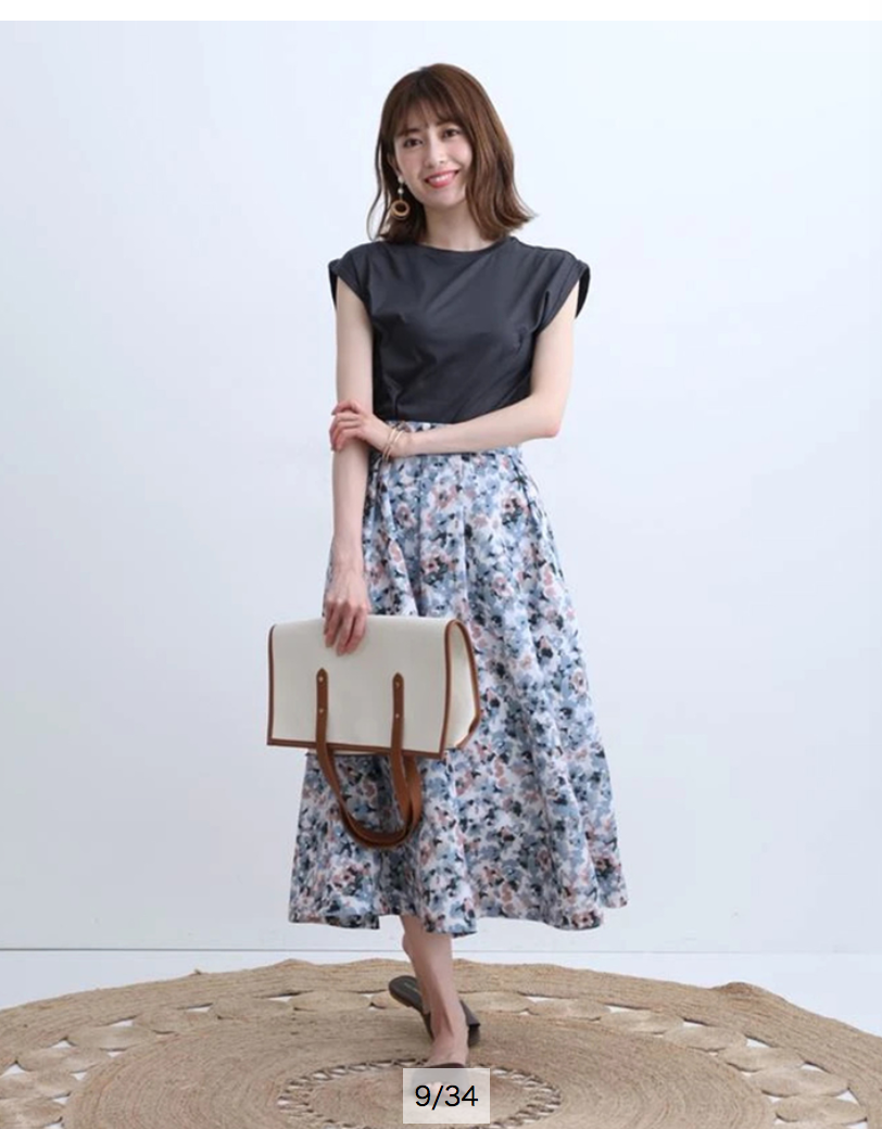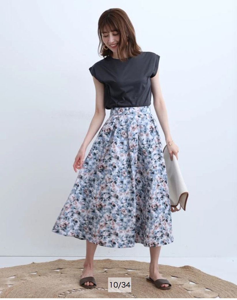 タックの生み出す立体感のあるフレアラインも、エレガントな大人の美スタイルへと導くカギに◎