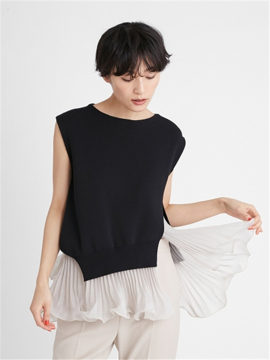 ラッフルプリーツスリーブレスニット