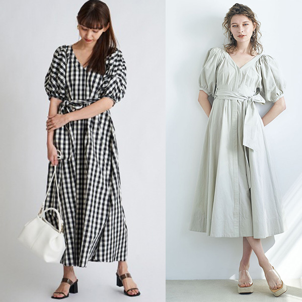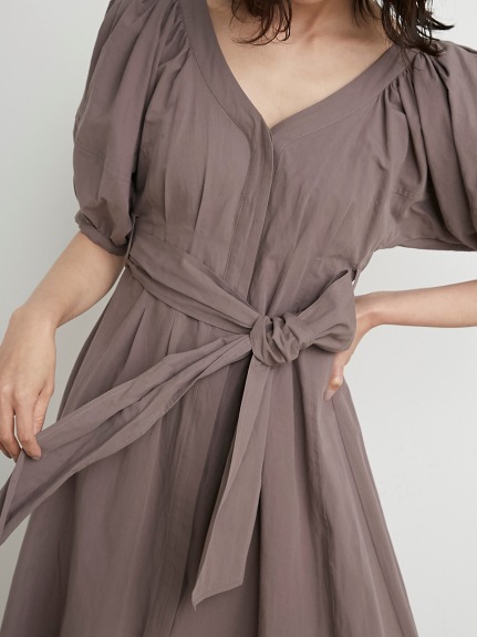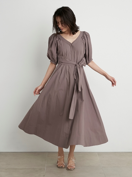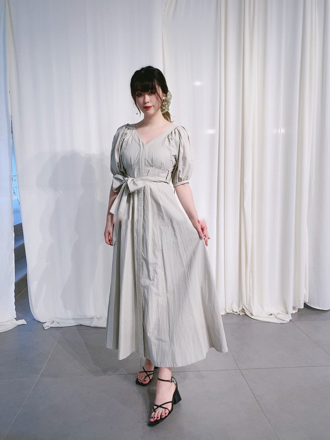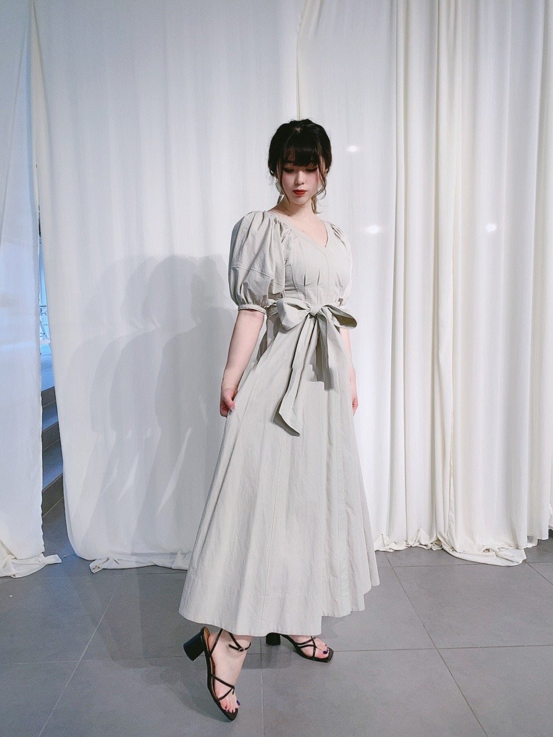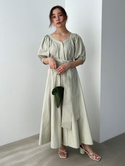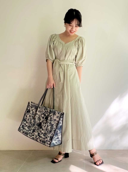 大胆にカッティングした前後のVネックが色香を纏う、コットンステッチワンピース。これからの季節に快適な清涼感のある生地を使用し、着心地の良さとナチュラルな雰囲気、女性らしい佇まいをバランス良く表現しました。ふっくらと丸いパフスリーブでトレンド感をプラス。タックでメリハリを出したウエストラインは、ベルトなしでも美しいシルエットを描きます。