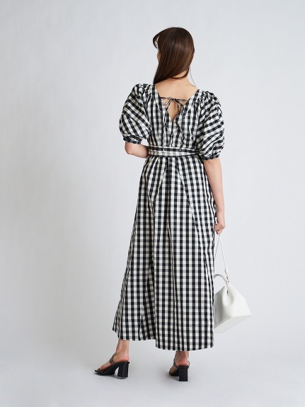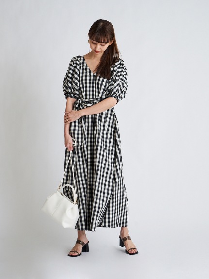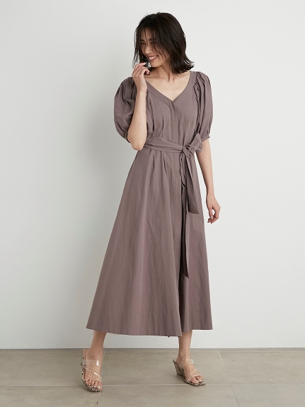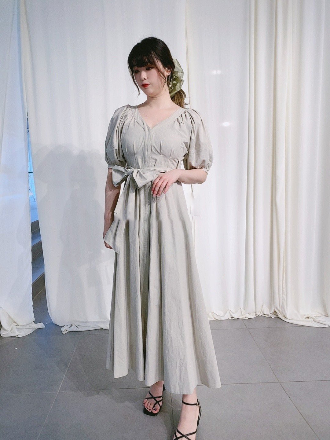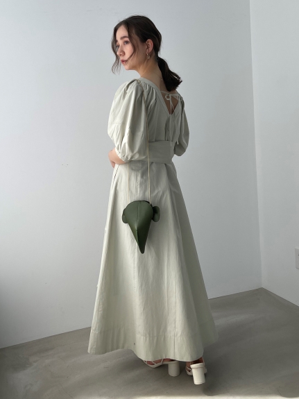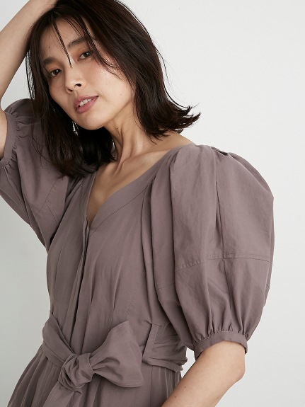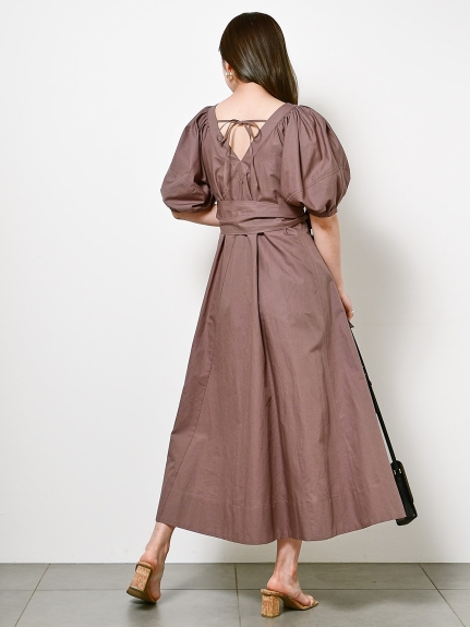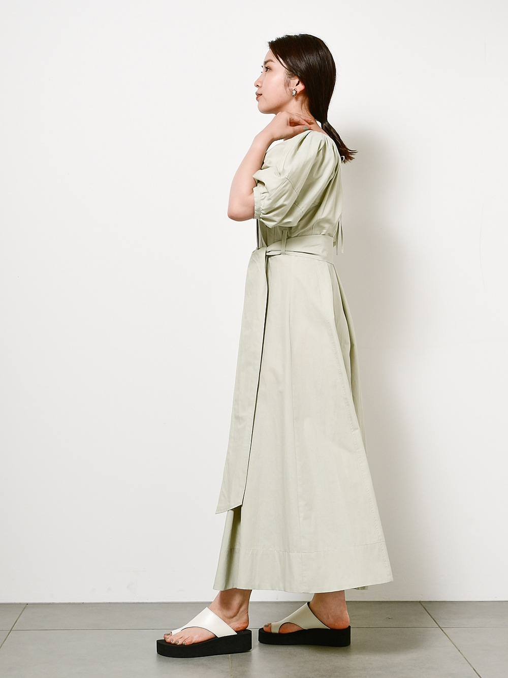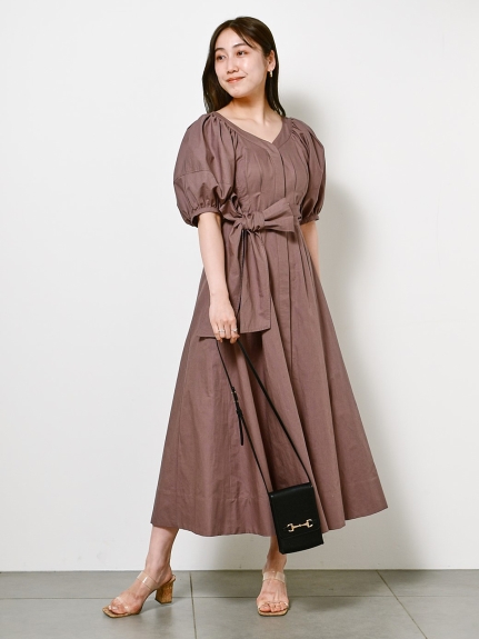 大胆にカッティングした前後のVネックが色香を纏う、コットンステッチワンピース。これからの季節に快適な清涼感のある生地を使用し、着心地の良さとナチュラルな雰囲気、女性らしい佇まいをバランス良く表現しました。ふっくらと丸いパフスリーブでトレンド感をプラス。タックでメリハリを出したウエストラインは、ベルトなしでも美しいシルエットを描きます。