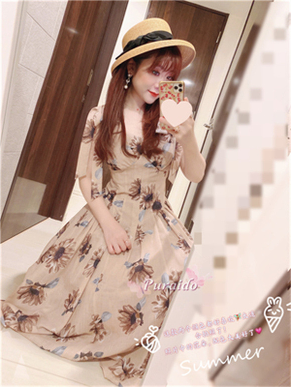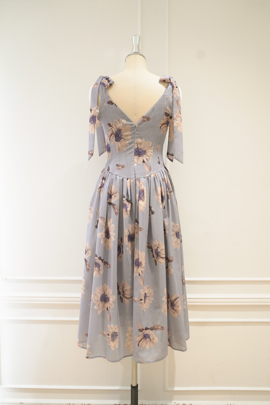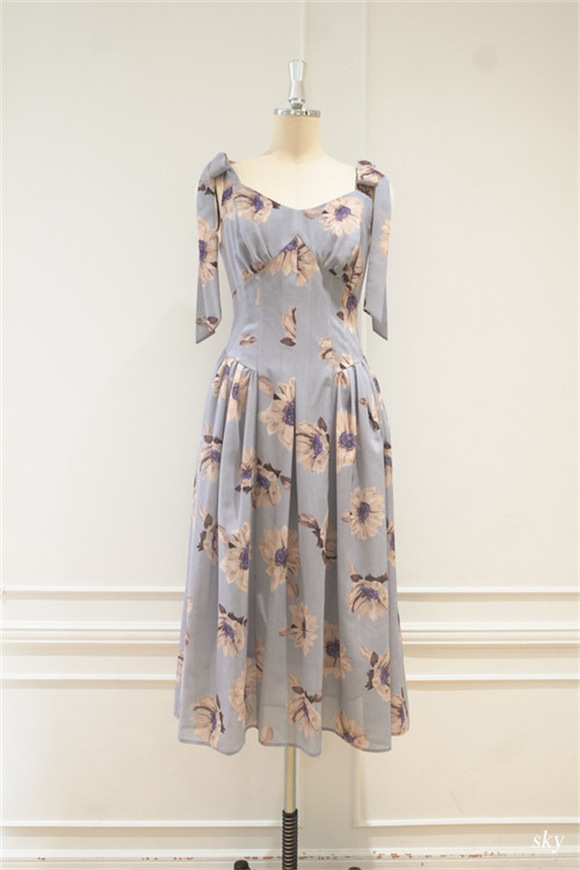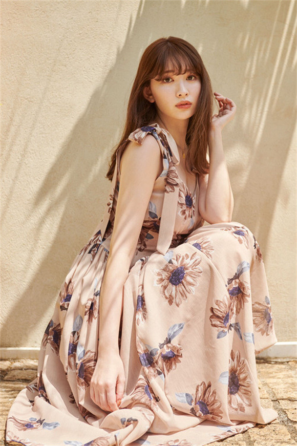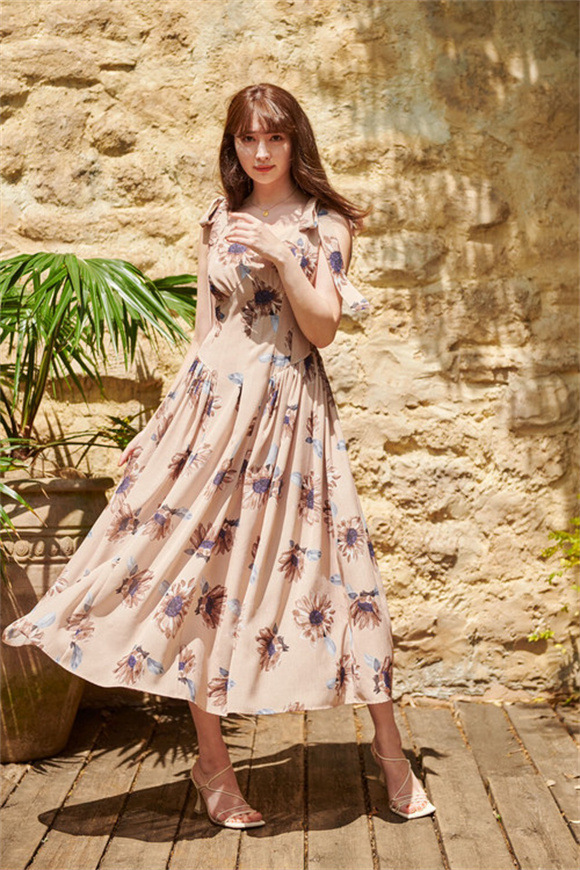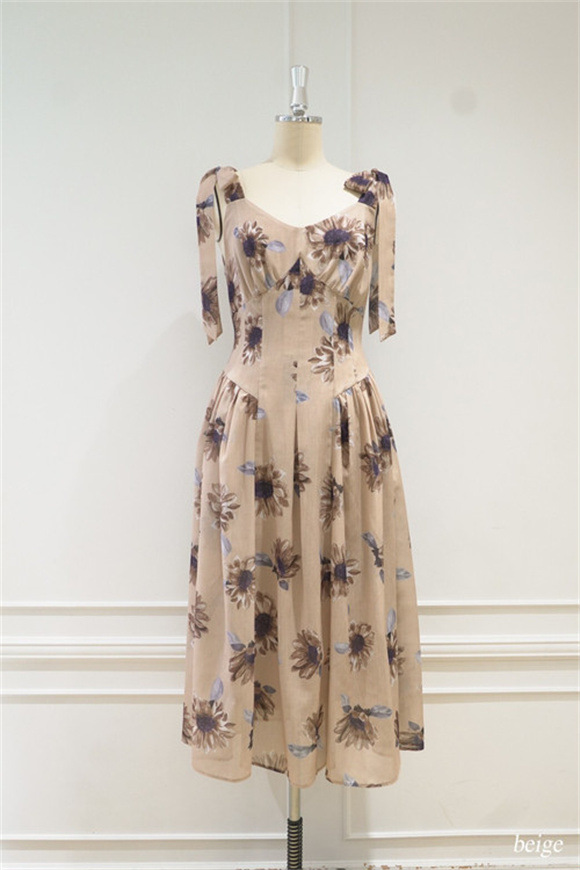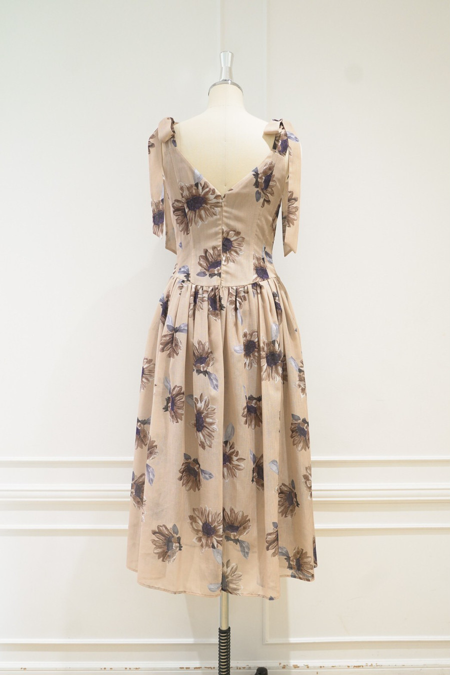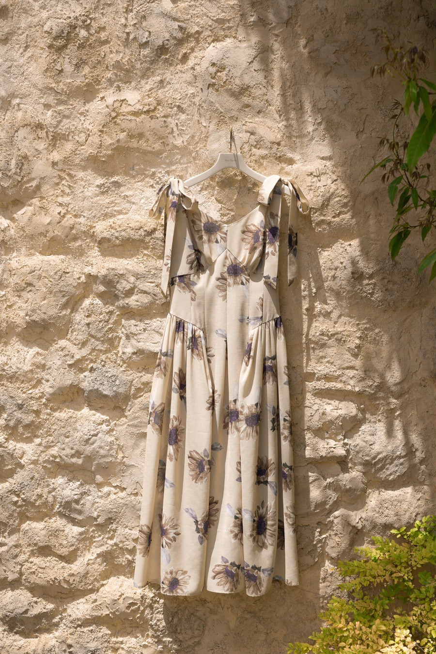 夏の代名詞サンフラワーをHer lip toらしくエレガントに落とし込んだサマードレスが完成。