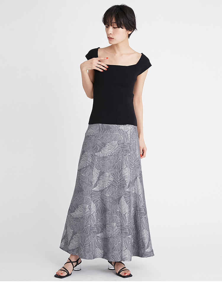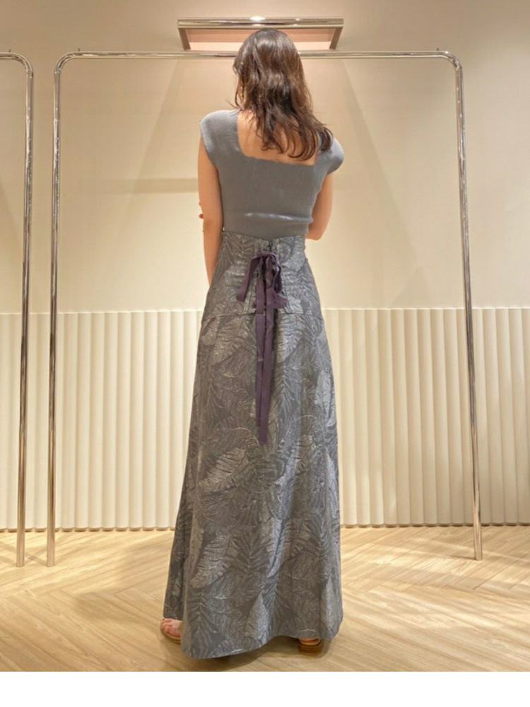 トレンドのスクエアネック、身頃のひし型の目立てラインでシルエットを美しく見せてくれるデザインです。