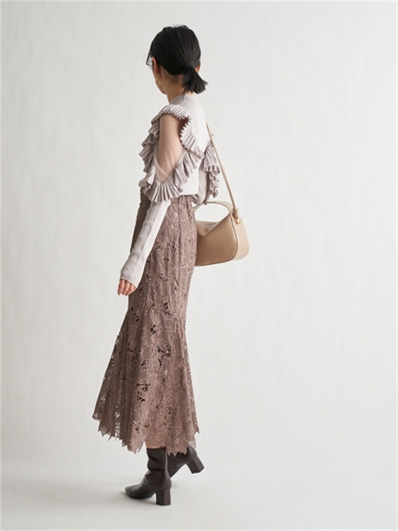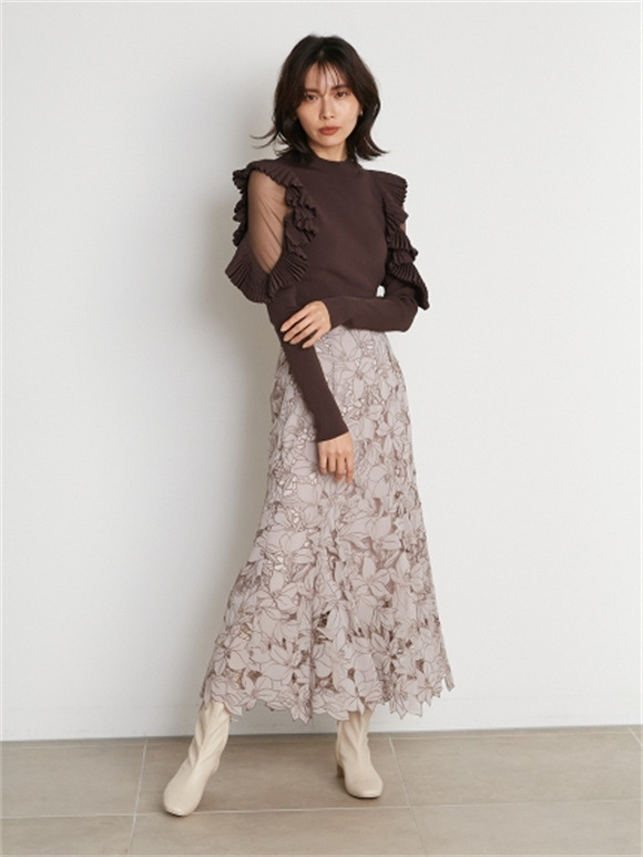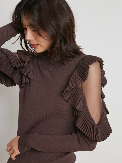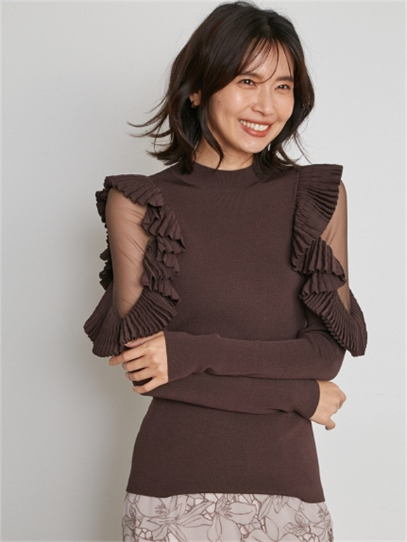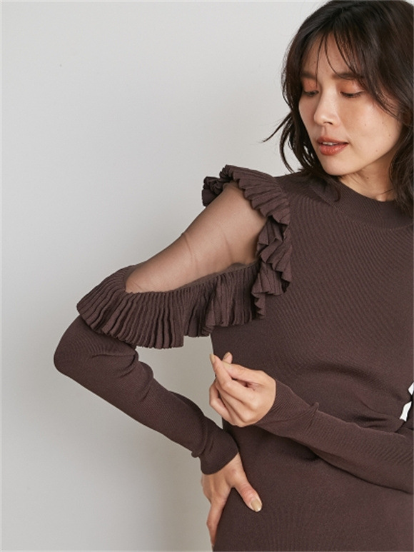「SNIDEL」人気のフレアスリーブニットが、プリーツデザインになってこの秋再登場。こだわりのフリルスリーブは華やかさを細かく計算し、大胆なディティールを繊細に落とし込むことで、女性らしさを存分に表現しました。大きく開いた二の腕にはチュール生地でシアー感、奥行きを出しました。