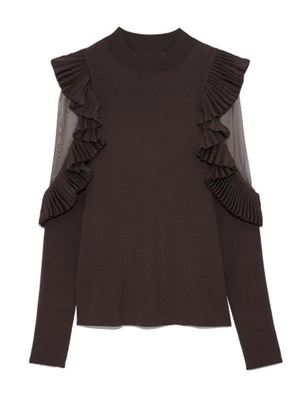 品の良いハイゲージニットと、繊細なシアー生地を組み合わせました。ライトグレー、ミント、ブラウン、ブラックのバラエティ豊かな4色です。