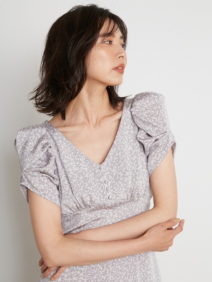 「SNIDEL」定番人気のフラワープリントワンピースは、大人の女性に似合うシックな柄と華やかなカラーリングがポイント。1枚纏うだけで女性らしさが上がり、品の良いエレガントさが漂います。鎖骨を美しく魅せるVネック、くしゅっとつまんだようなパフスリーブはタックと仕込みを入れることで柔らかくもモードな印象に。胸元のボタンなど、計算された絶妙な甘さが大人ムードを演出。胸下切替えと背中のリボンで、スタイルアップまで抜かりなく。
