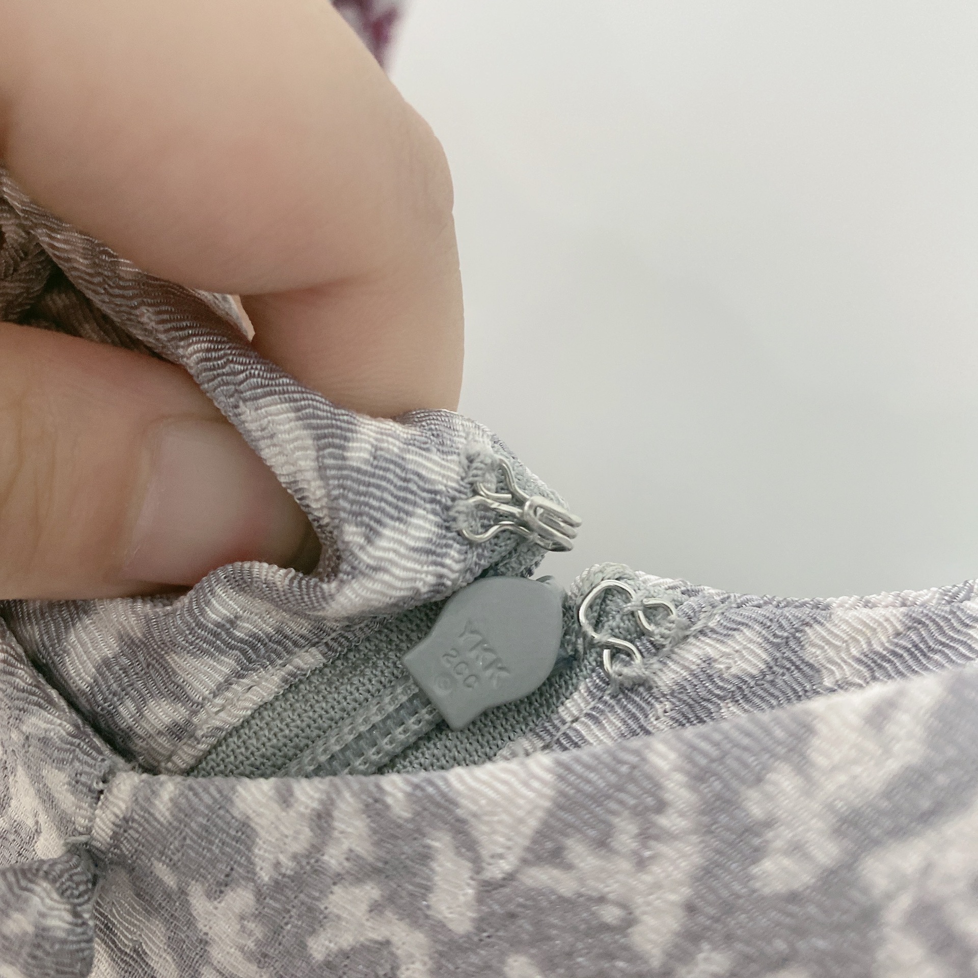 しなやかな落ち感と艶感のある縮緬生地は、シワになりにくいポリエステル素材を使用。バラエティ豊かにそろえた、変形ドットのようなライトグレー、王道な花柄のブラック、ボタニカル調のピンクベージュ、幾何柄のワインの4色展開です。