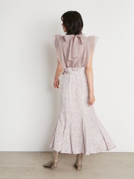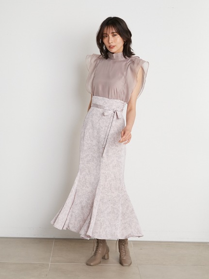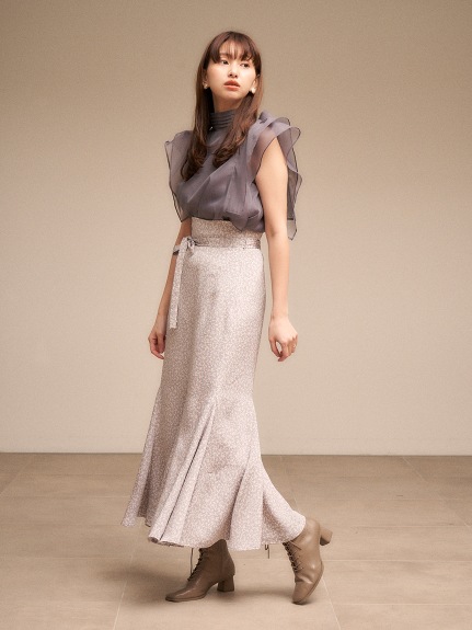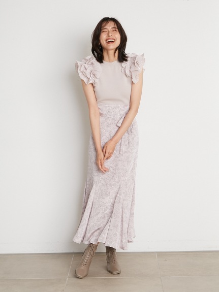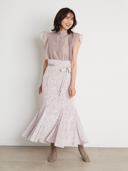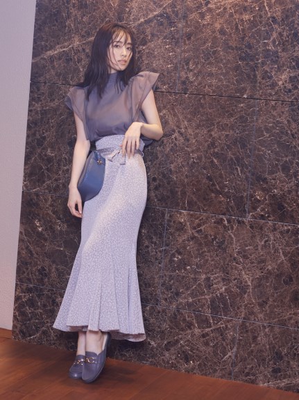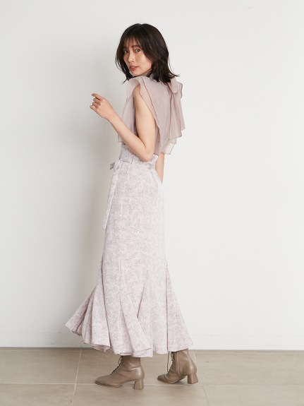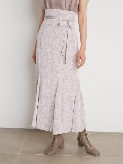 「SNIDEL」定番人気のプリントスカートが、色香漂うマーメイドシルエットで登場。ハイウエストデザインと華奢な細ベルトで、すっきりとしたウエスト周りと脚長効果を実現しました。たっぷりのマチでボリュームを出した裾は、歩くたびに華やかに広がるドラマティックな装い。どんなトップスもレディに魅せるルックスは、デイリーからオフィスまで毎日のワードローブを彩ります。