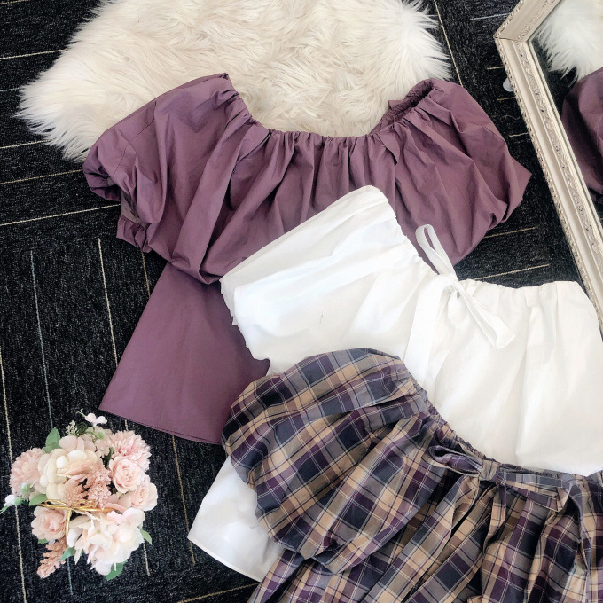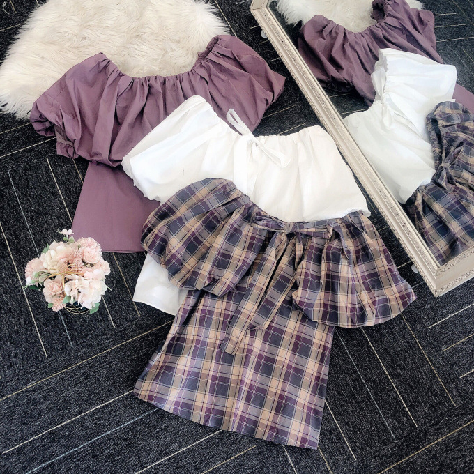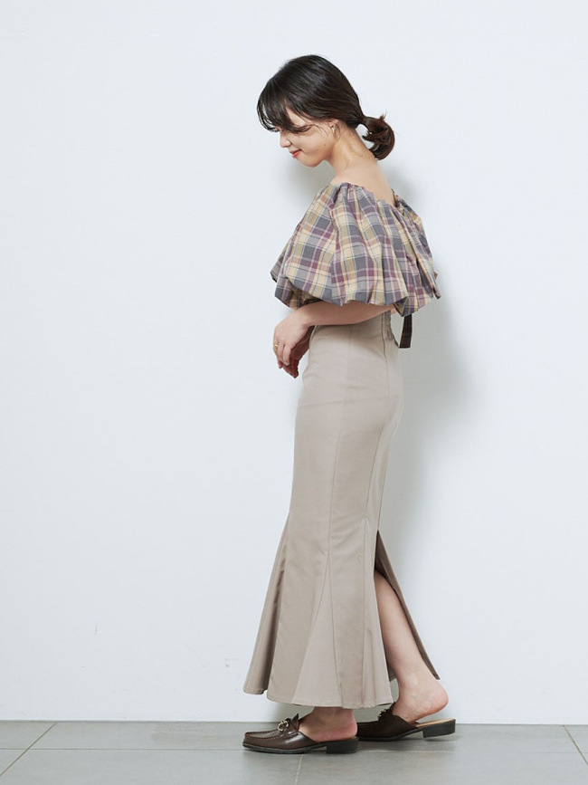 しなやかな落ち感とハリ感を兼ね備えた生地を使用しました。ホワイト、ラベンダー、チェックの3色展開です。