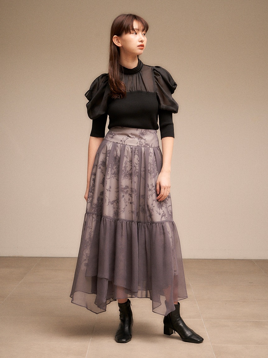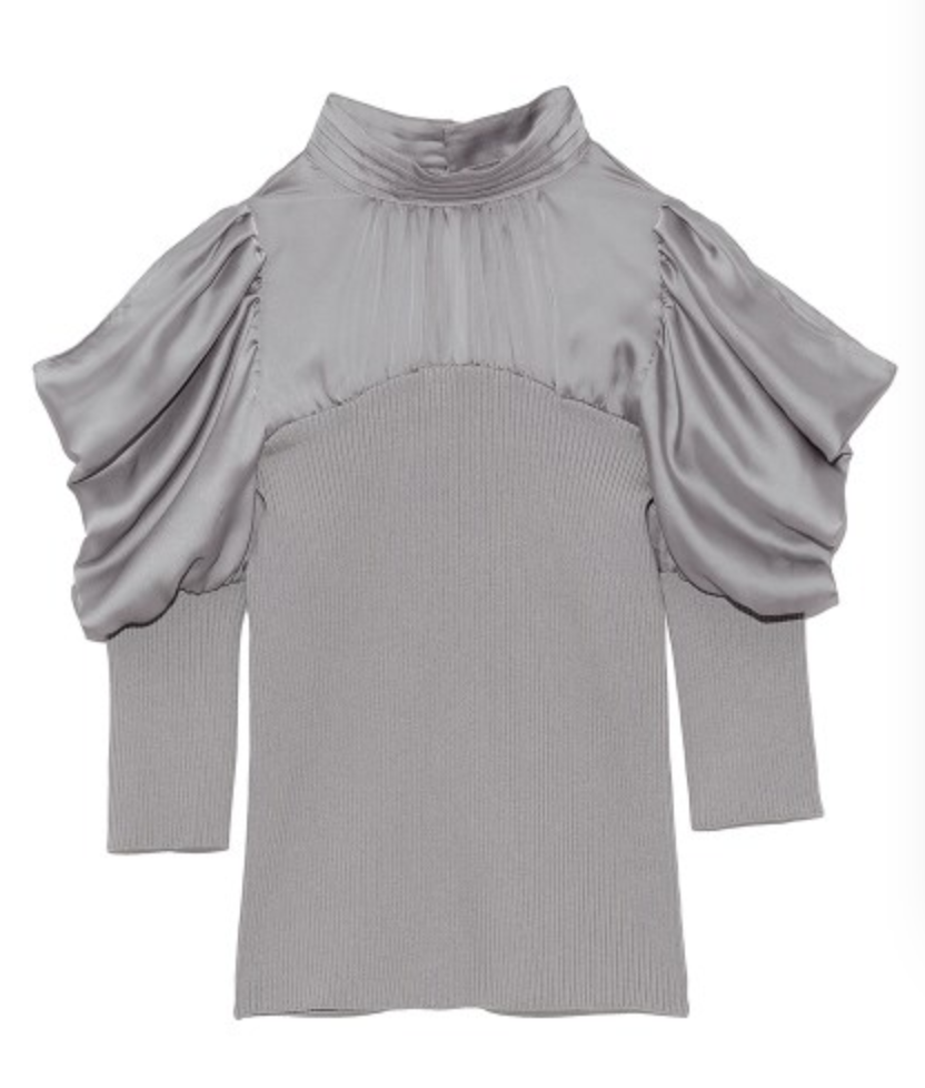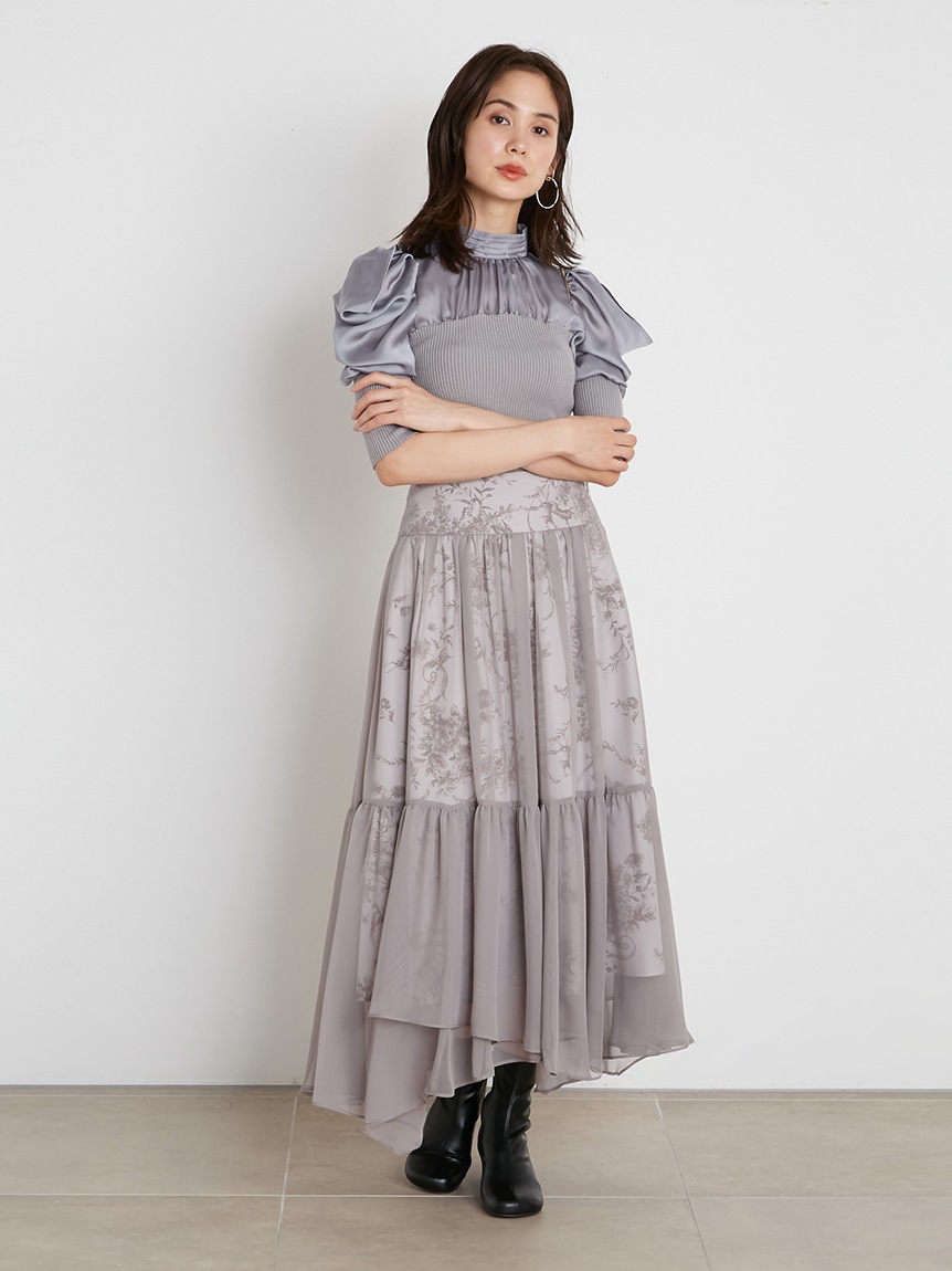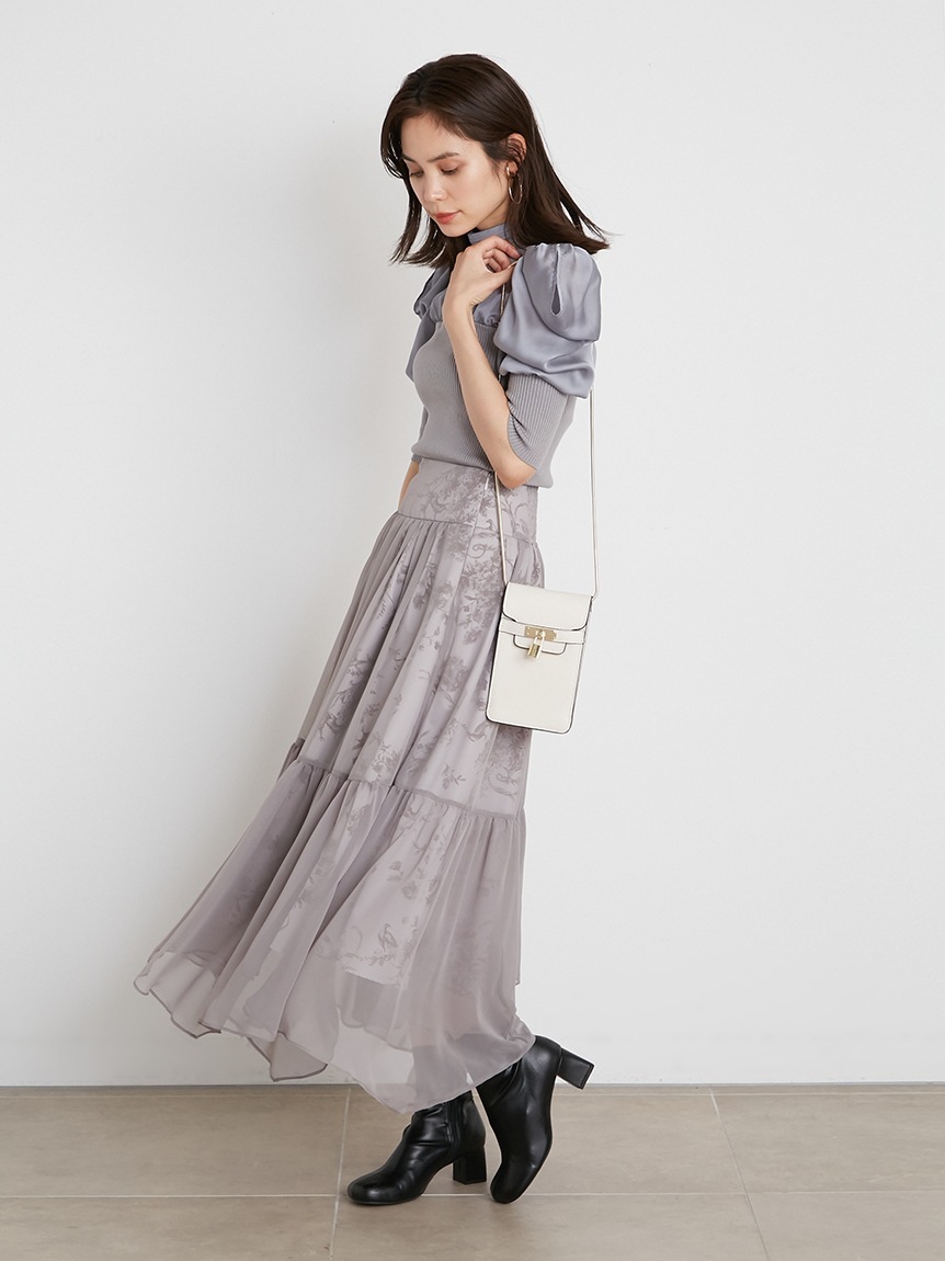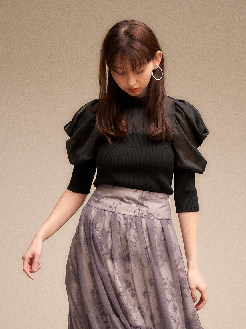 身頃と袖に異なるマテリアルを使用し、ワントーンでシックに整えたドッキングトップス。タックを寄せたスタンドカラー、美しいドレープを描く胸元、スリットをあしらったパフショルダーなど、「SNIDEL」らしいデザイン性の高さでワンランク上の1枚を表現しました。品の良さがありながらも程良い個性を放ち、オフィスからデイリーまでコーディネートの主役を担い秋のワードローブを彩ります。