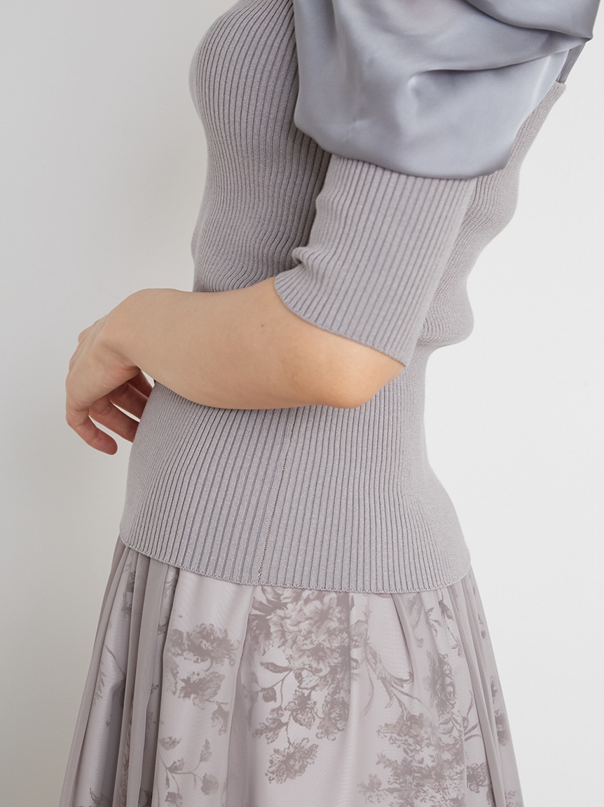 本体(ニット部分):ポリエステル43%、ナイロン28%、レーヨン18%、再生繊維(セルロース)9%、ポリウレタン2%/別布(布帛部分):ポリエステル100%