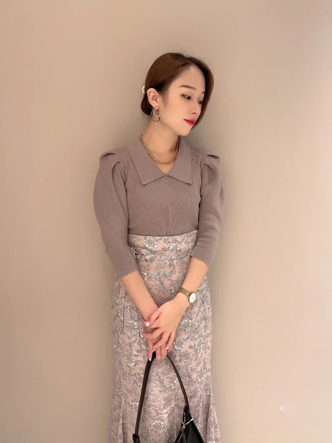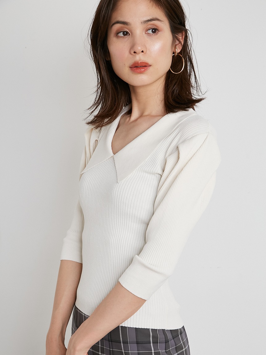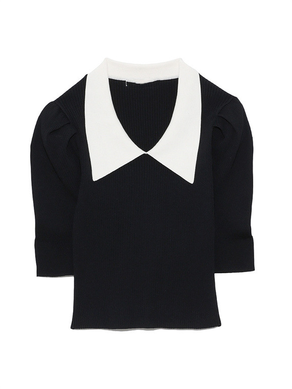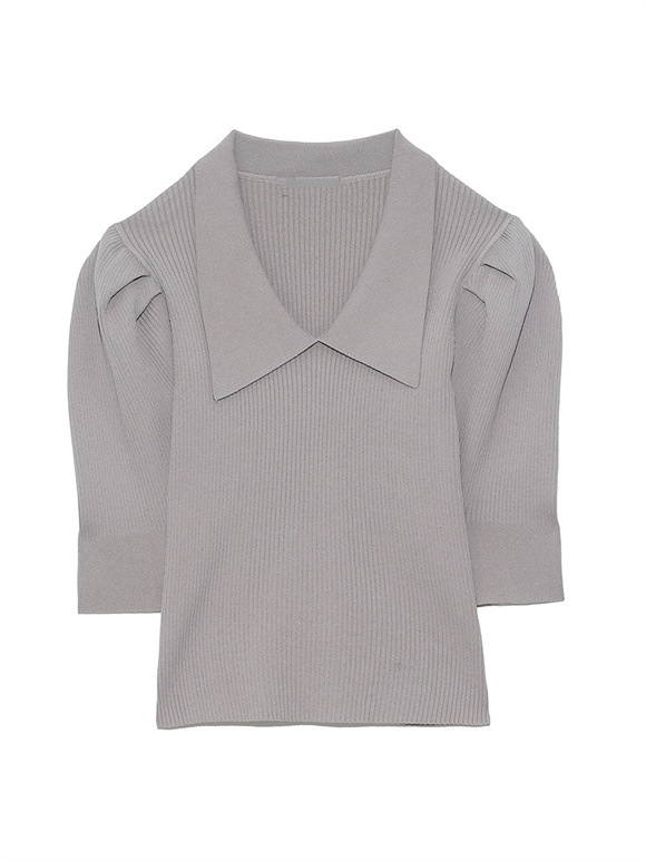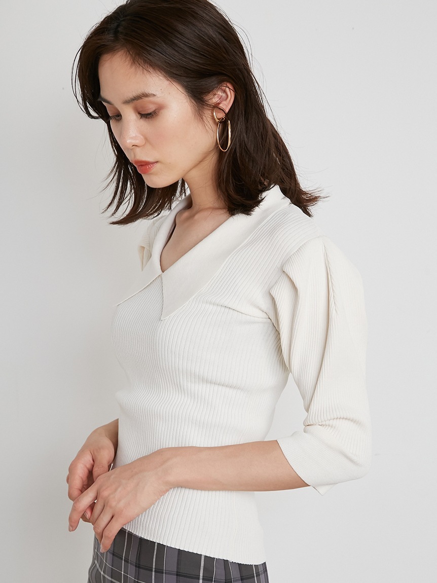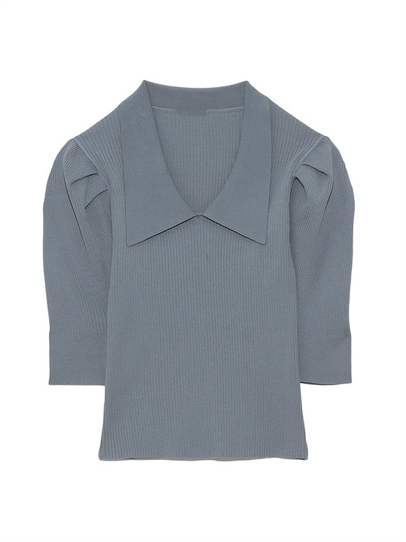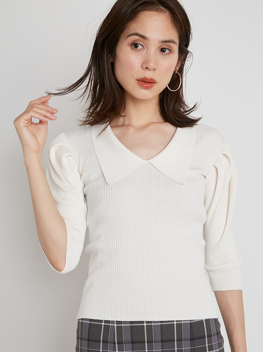 【クラシカルに引き寄せるビックカラーパフスリーブニット】