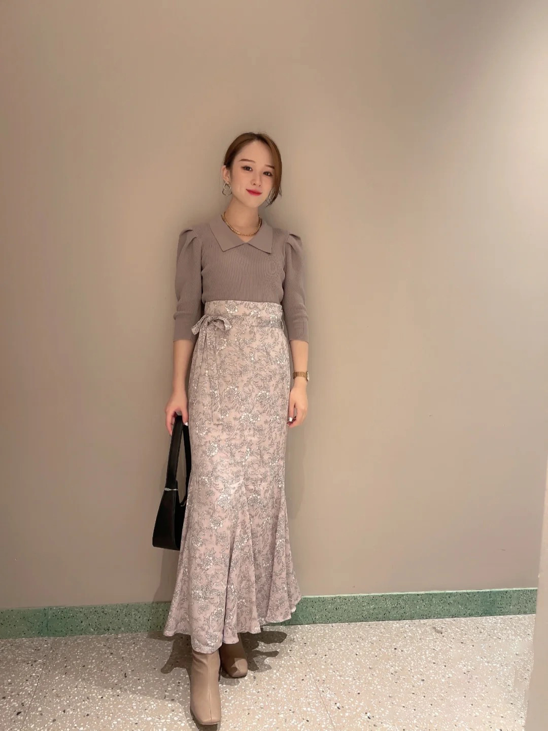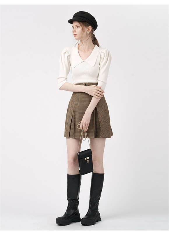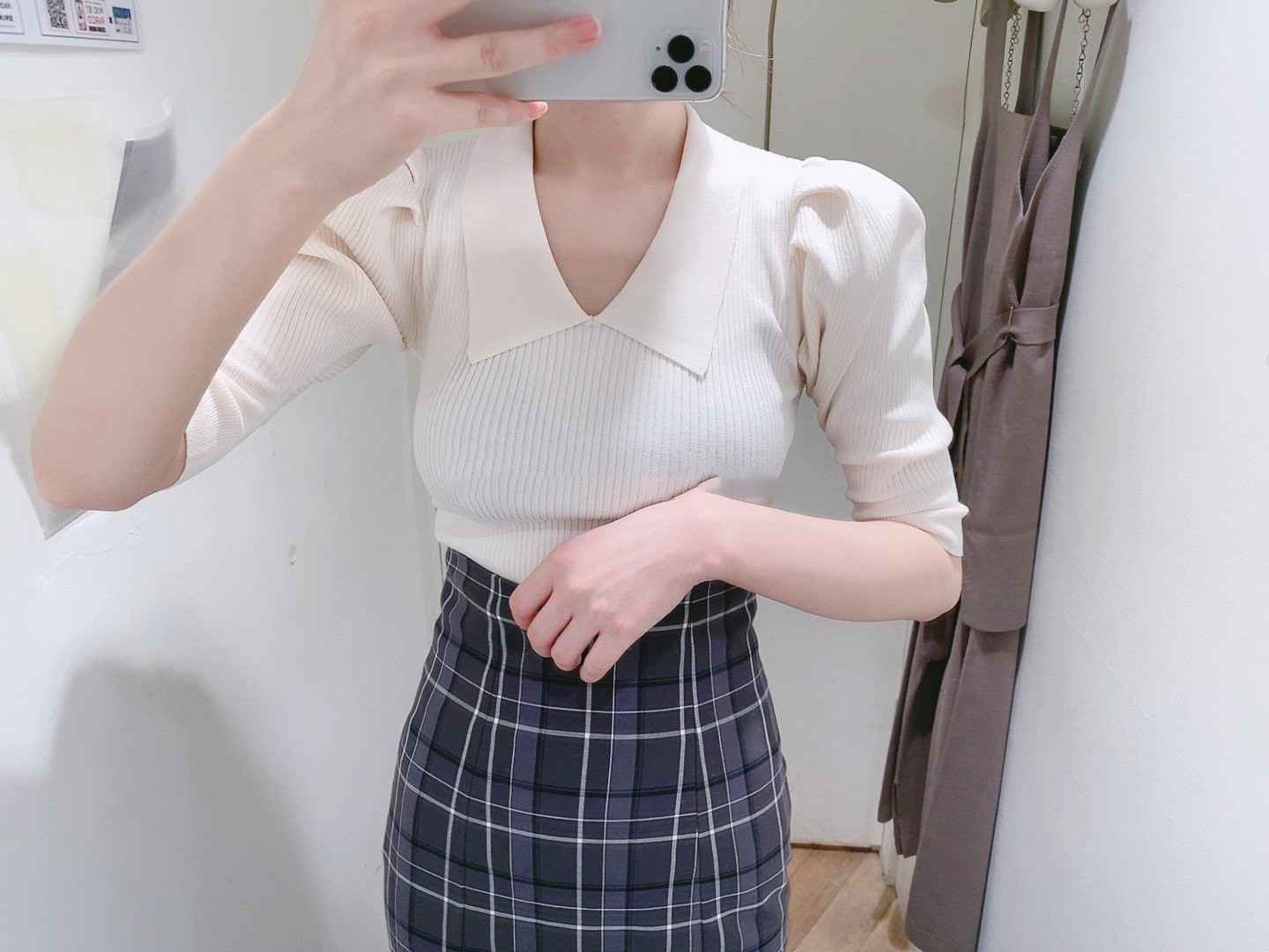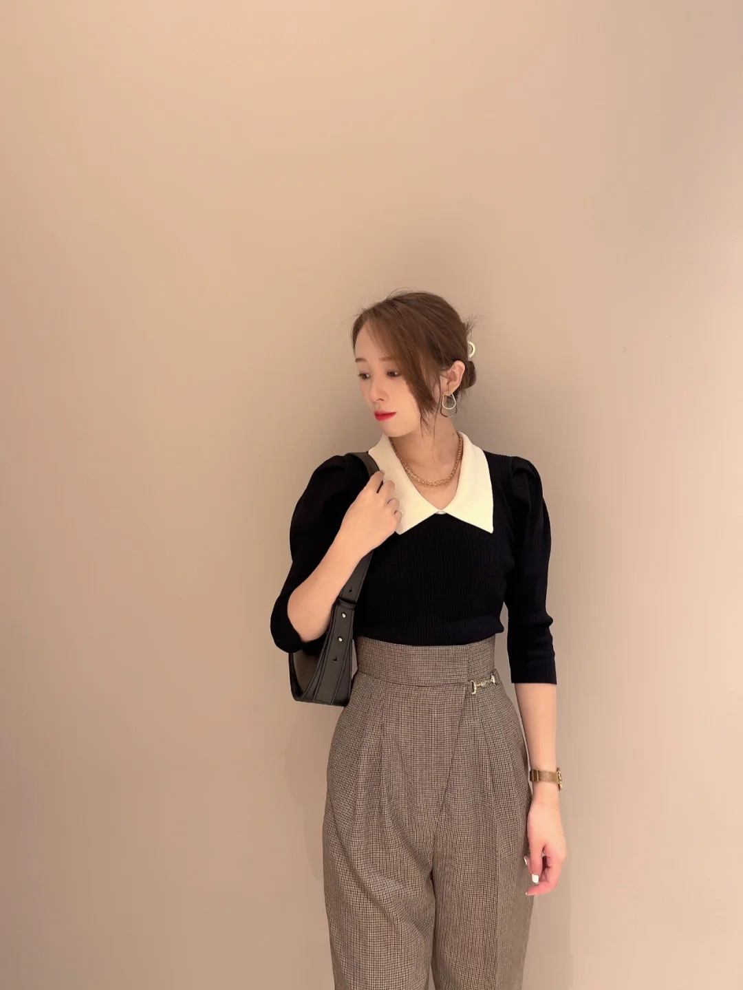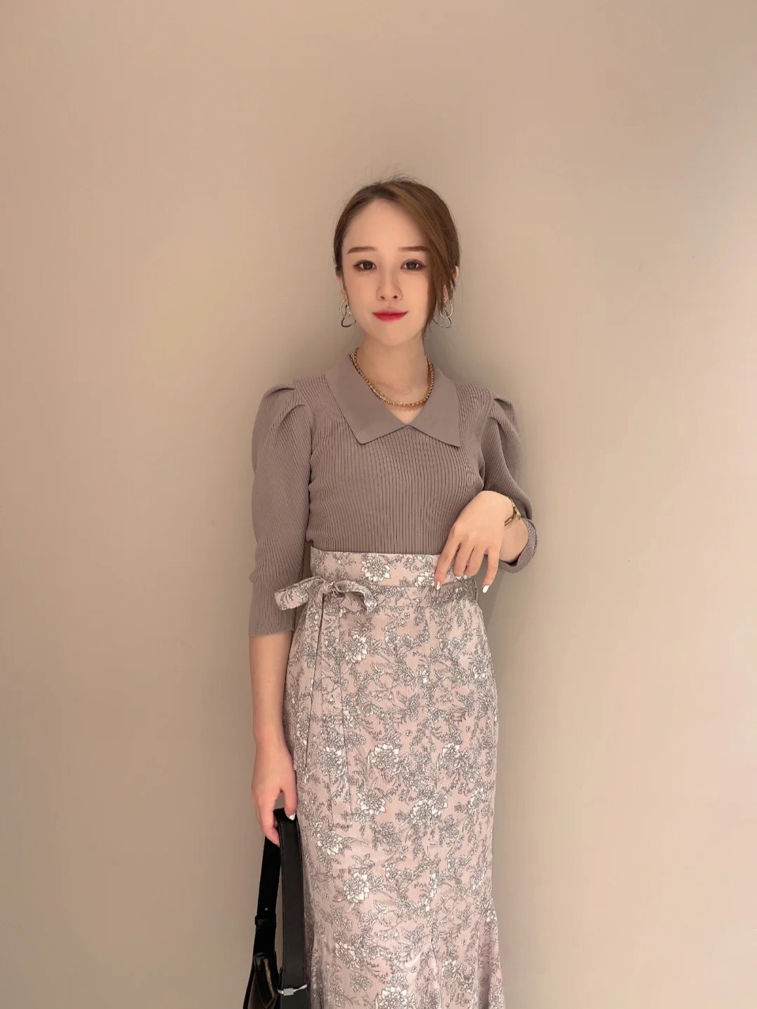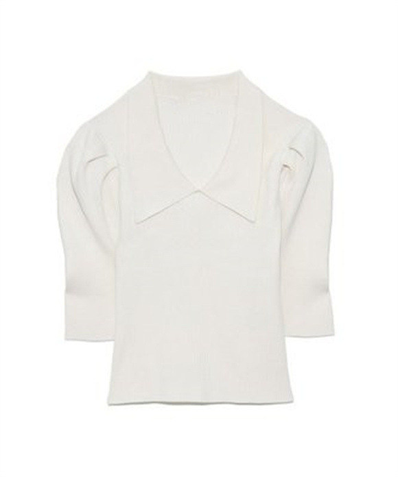 【クラシカルに引き寄せるビックカラーパフスリーブニット】