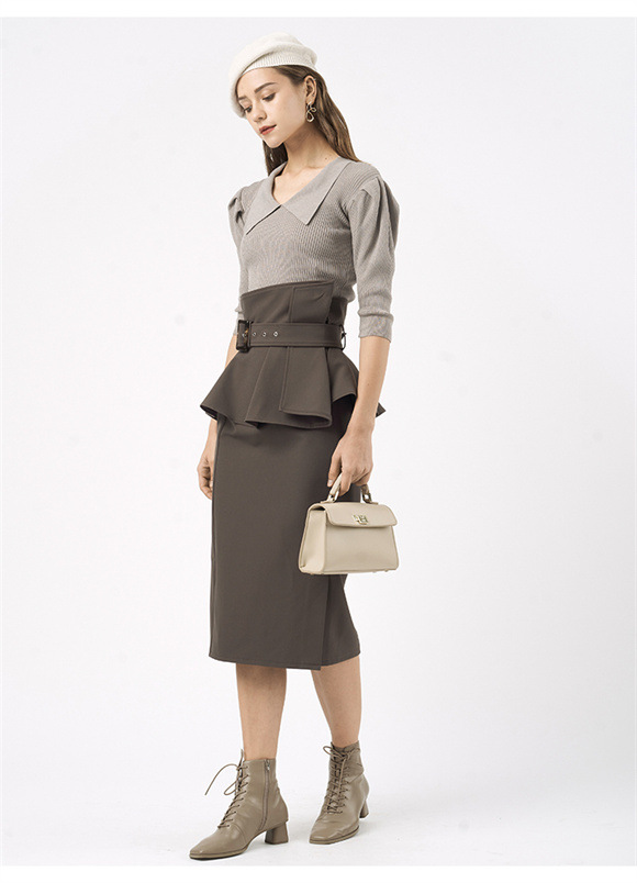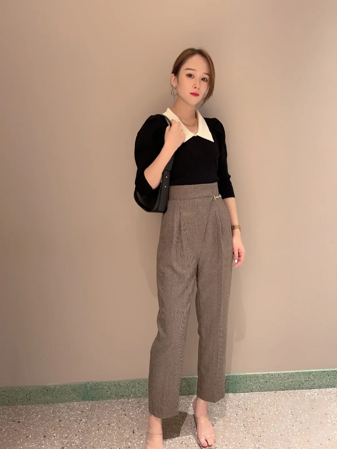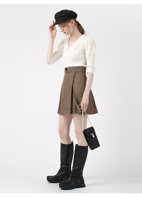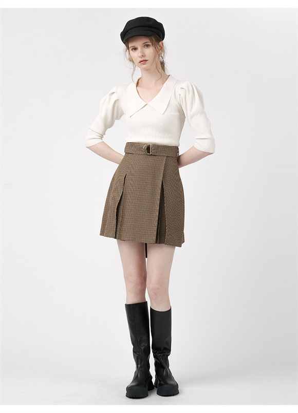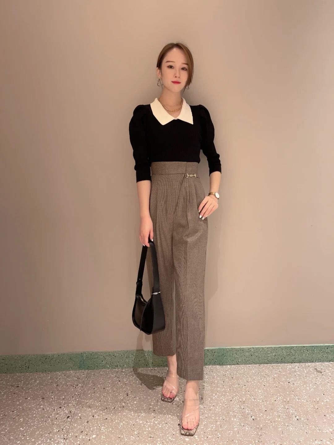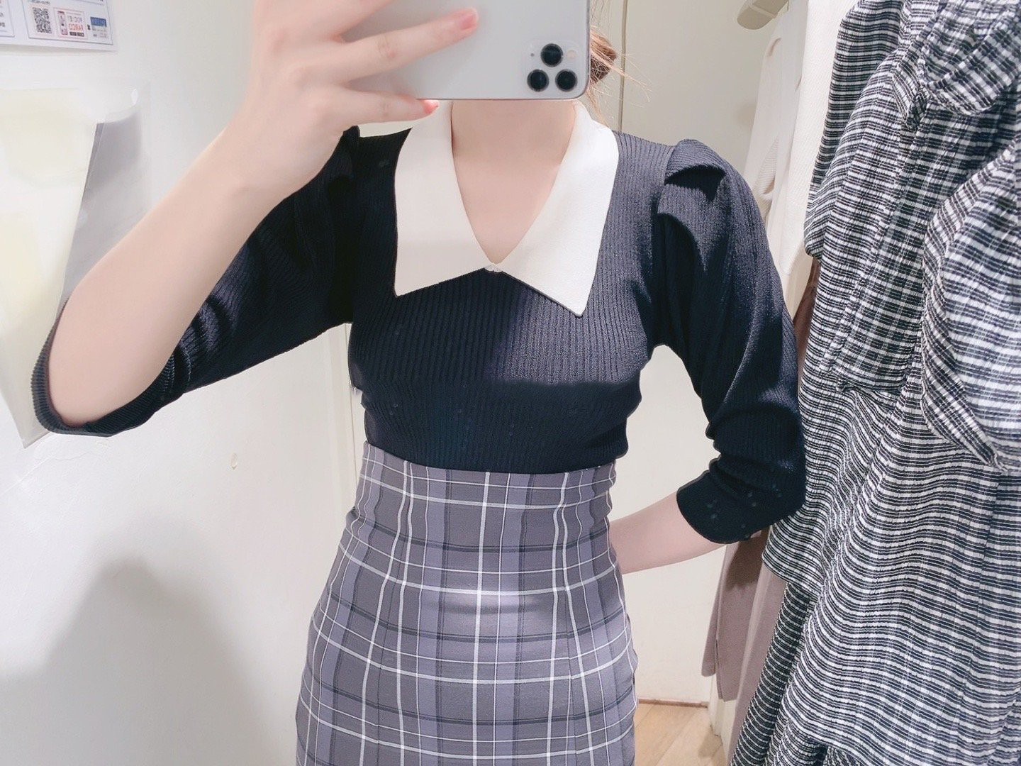 【クラシカルに引き寄せるビックカラーパフスリーブニット】