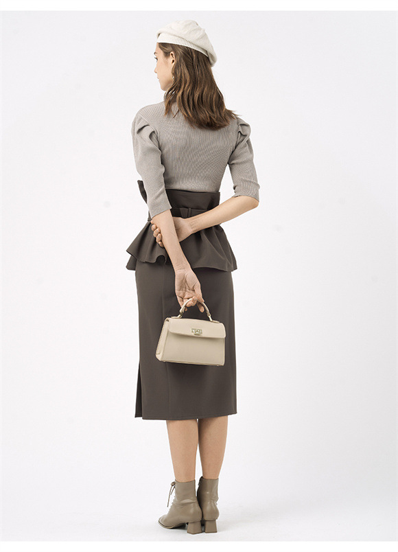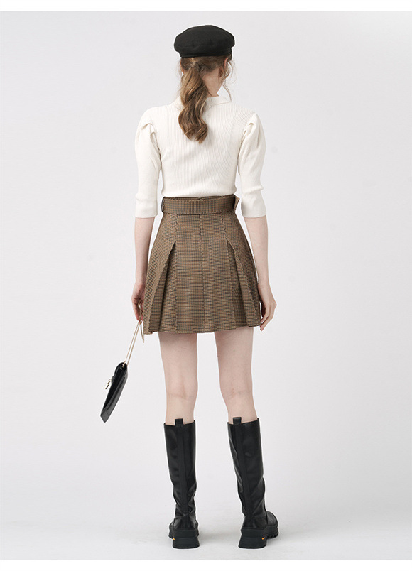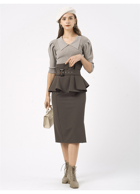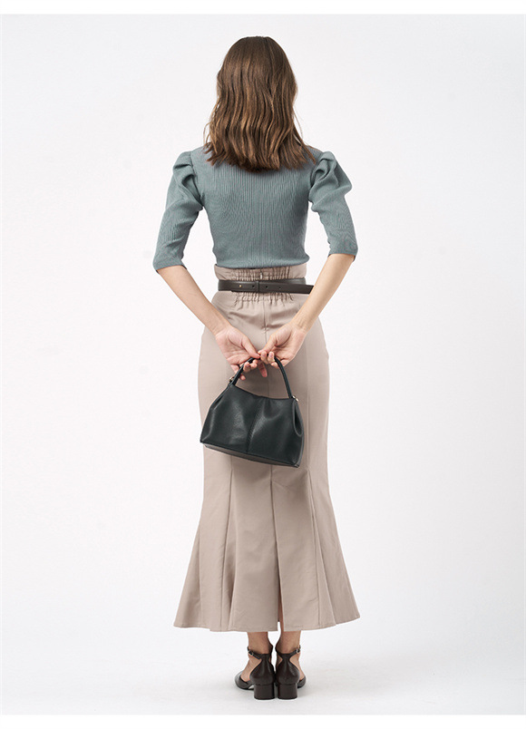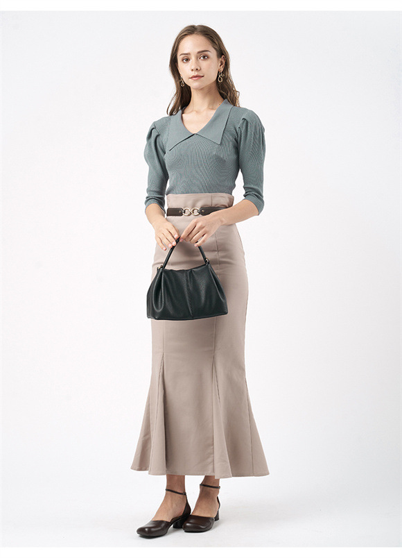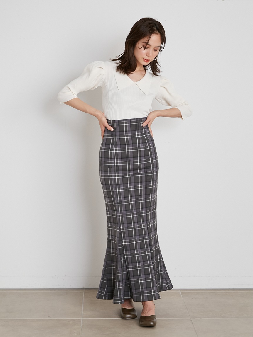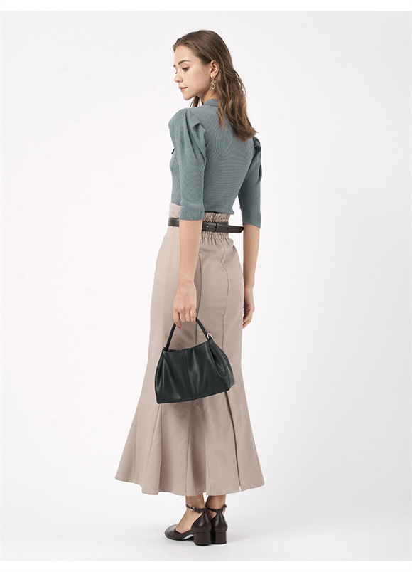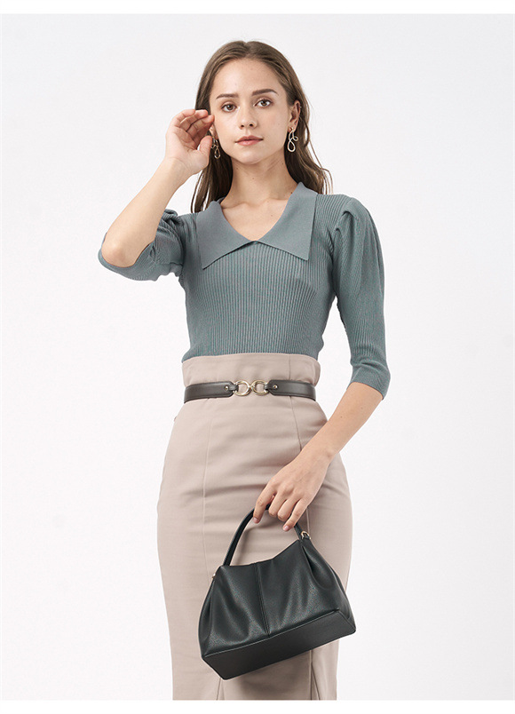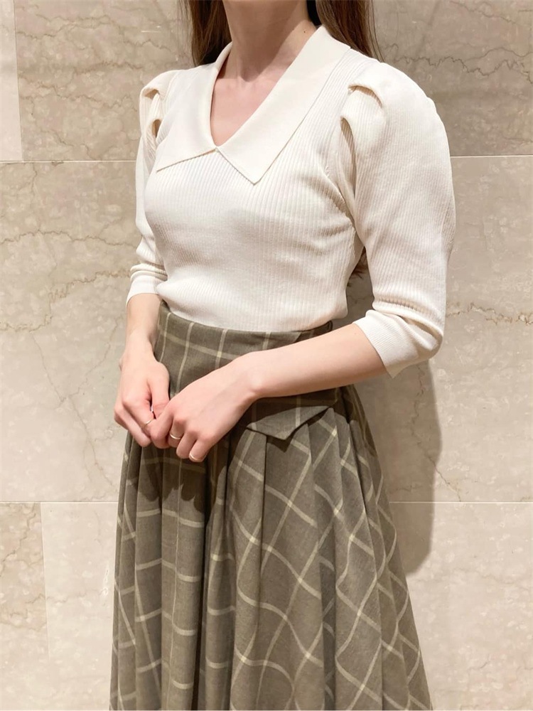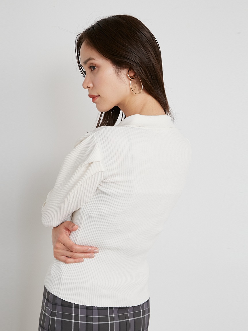 縦長のニットカラーがクラシカルムードを盛り上げるリブニットプルオーバー。タックで表現した立体的なパフスリーブで、華やかさとモードな雰囲気を演出しました。襟付きデザインの品の良さと今季らしいトレンドのバランス感覚を大切にし、ボディはベーシックなリブニットなので着回し力も抜群。パンツ・スカートなど合わせるボトムスを選ばず、ワンピースやコンビネゾンと重ねても存在感を発揮します。