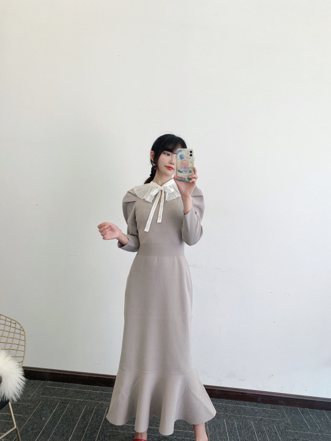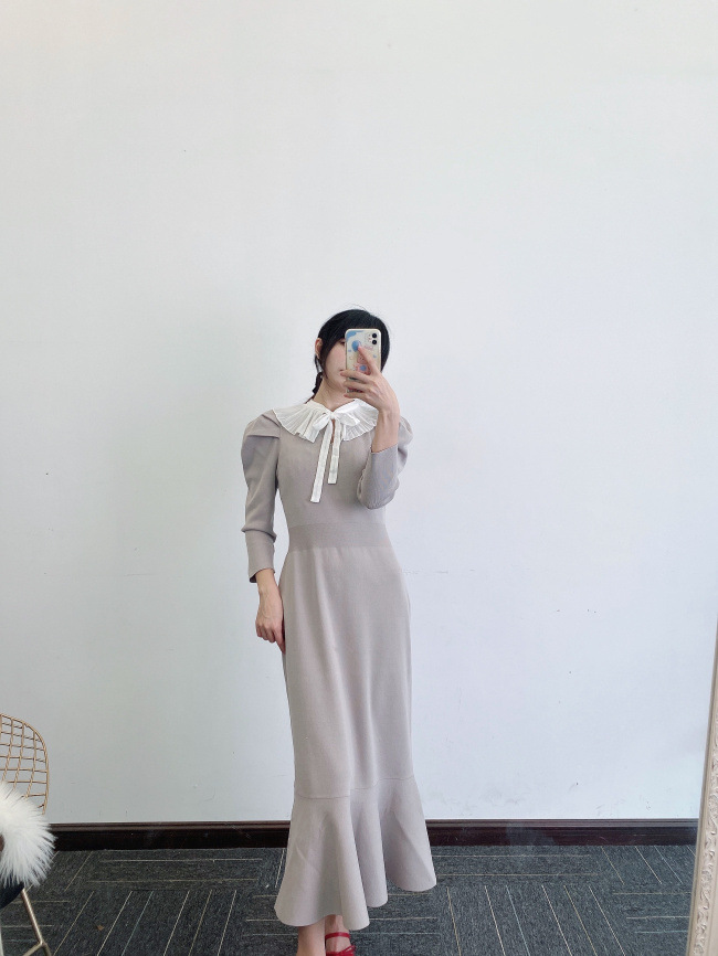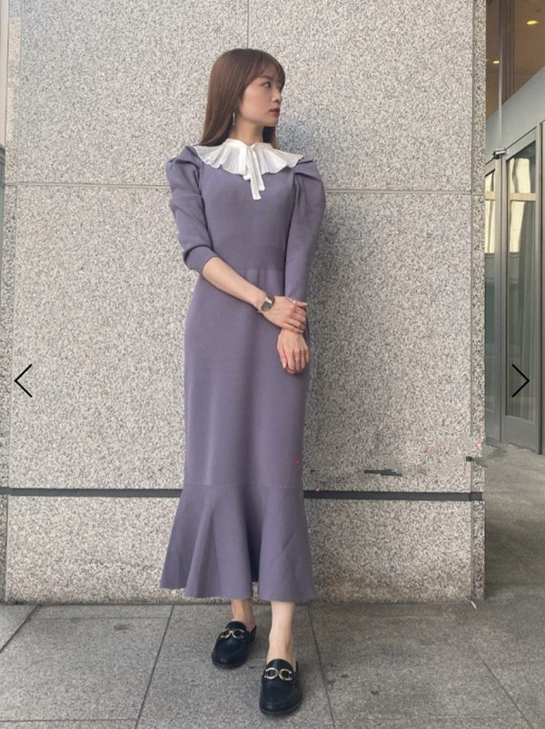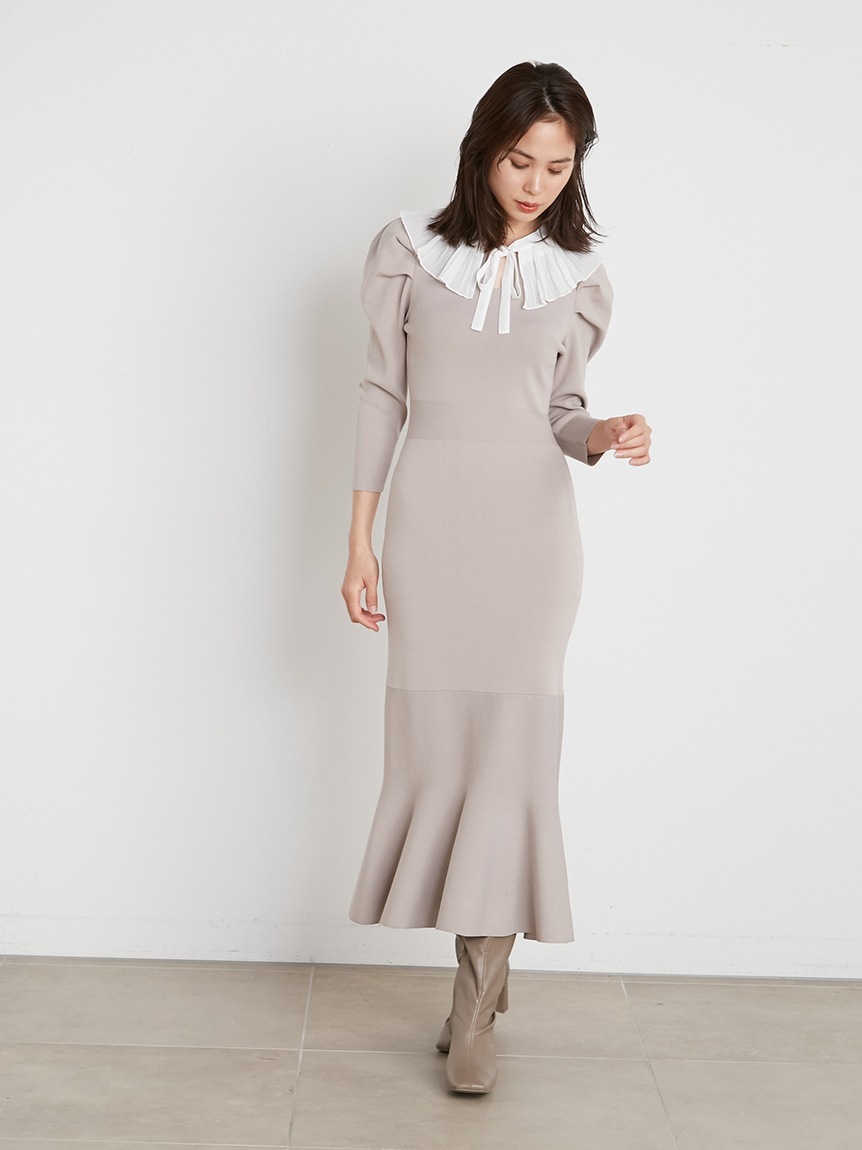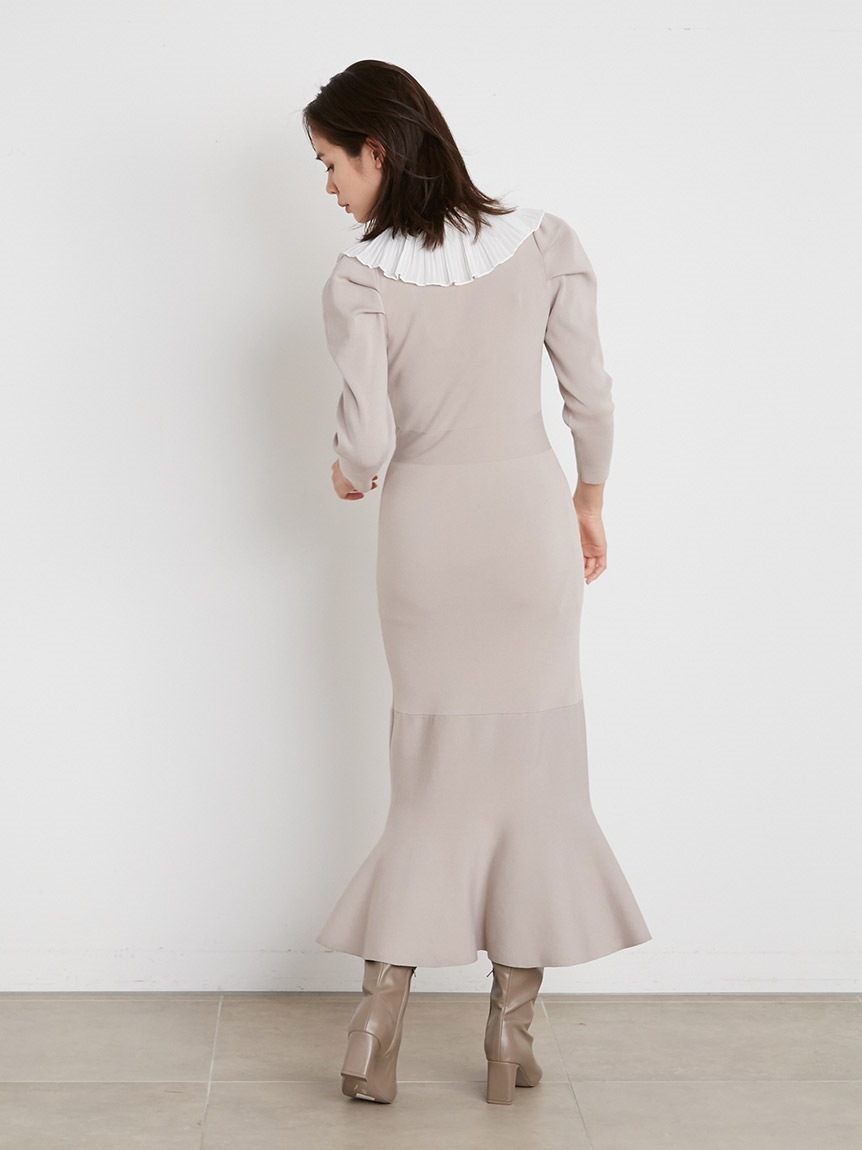 プリーツカラーニットワンピース 入金確認後3-5営業日発送(土日祝日除く)