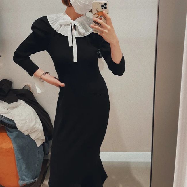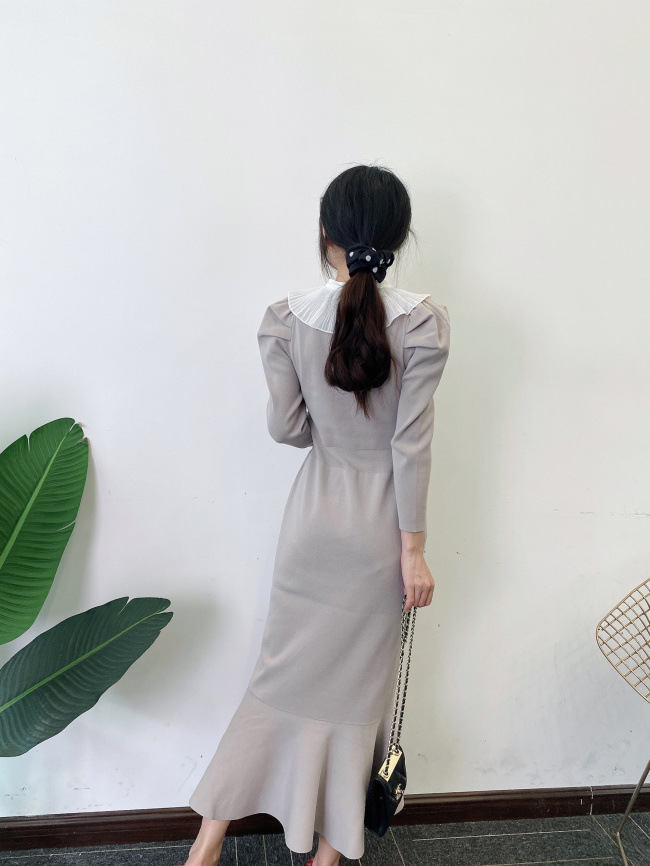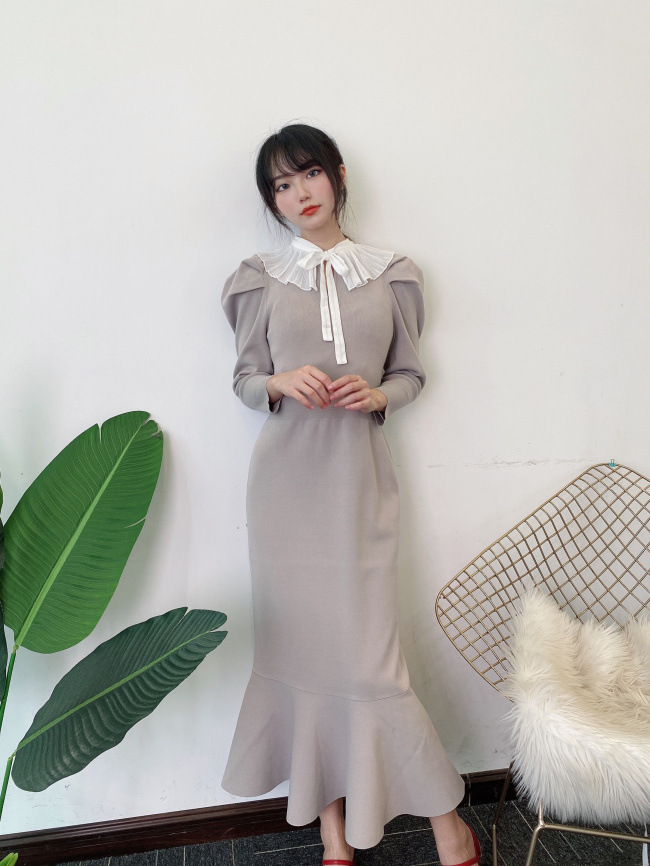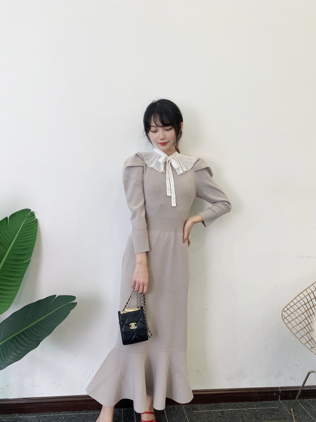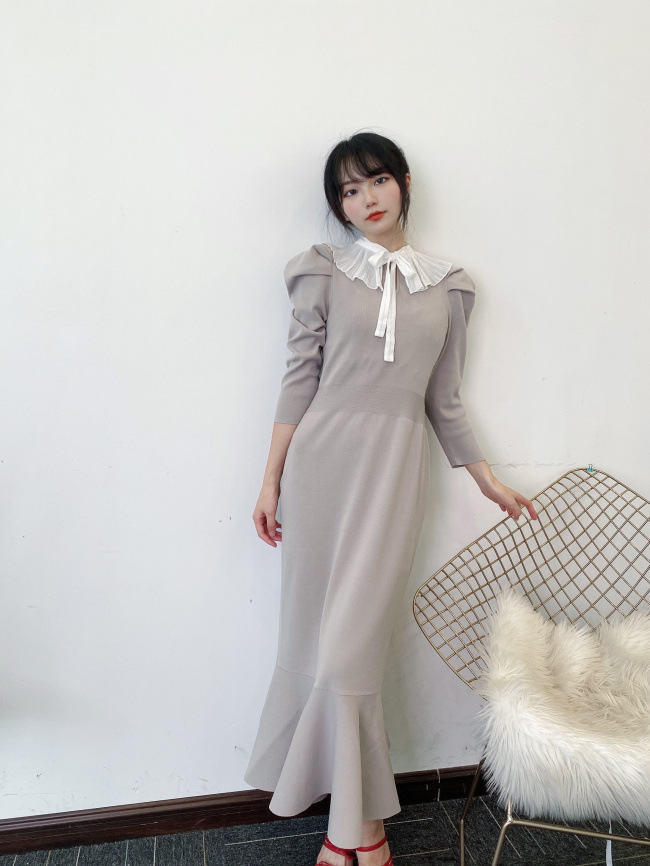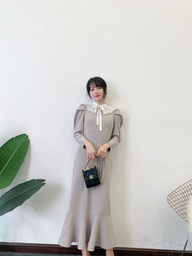 プリーツカラーニットワンピース 入金確認後3-5営業日発送(土日祝日除く)