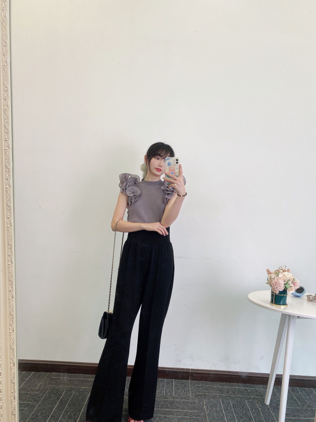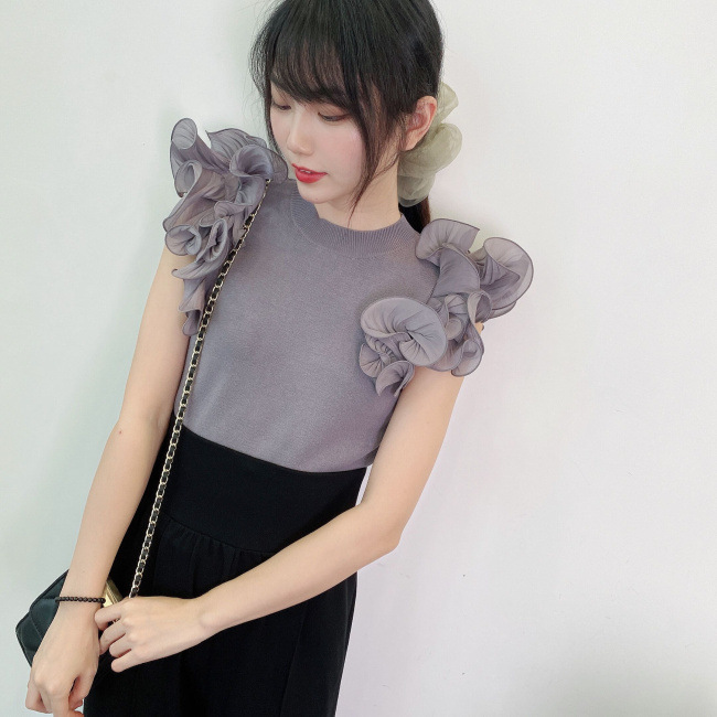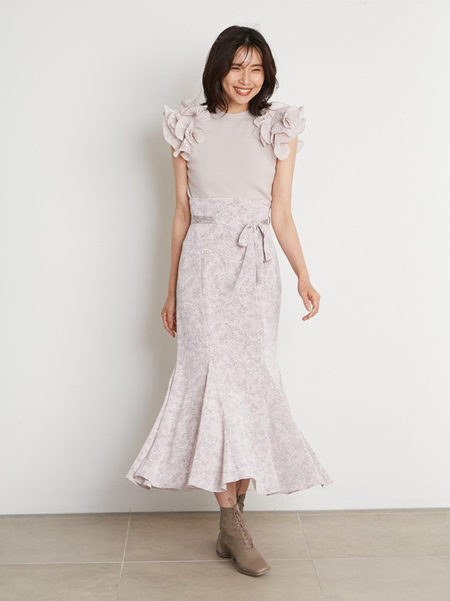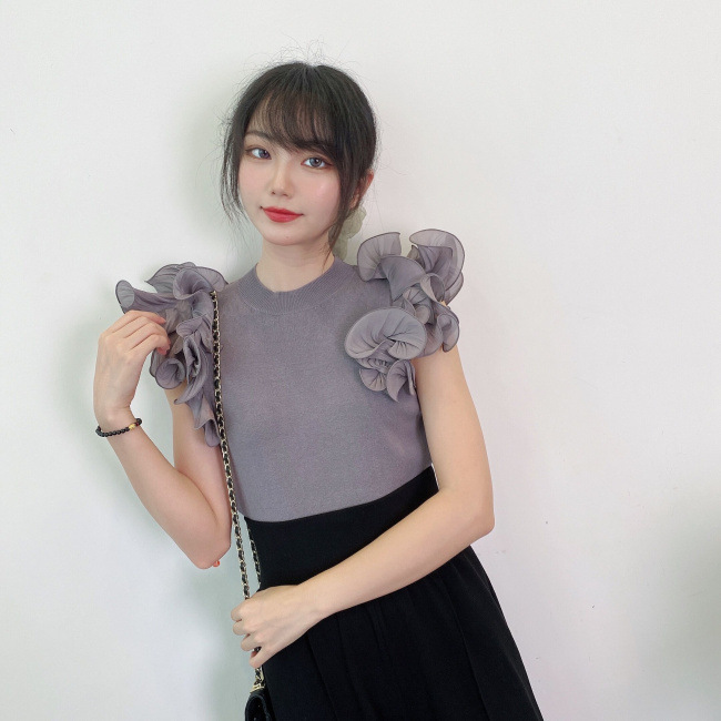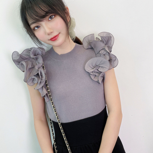 【計算されたラッフルスリーブが女性らしさを発揮するドッキングニット】